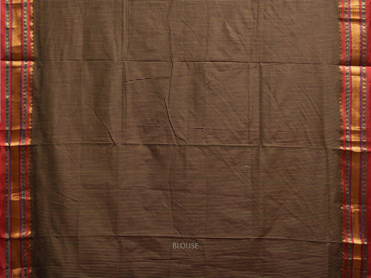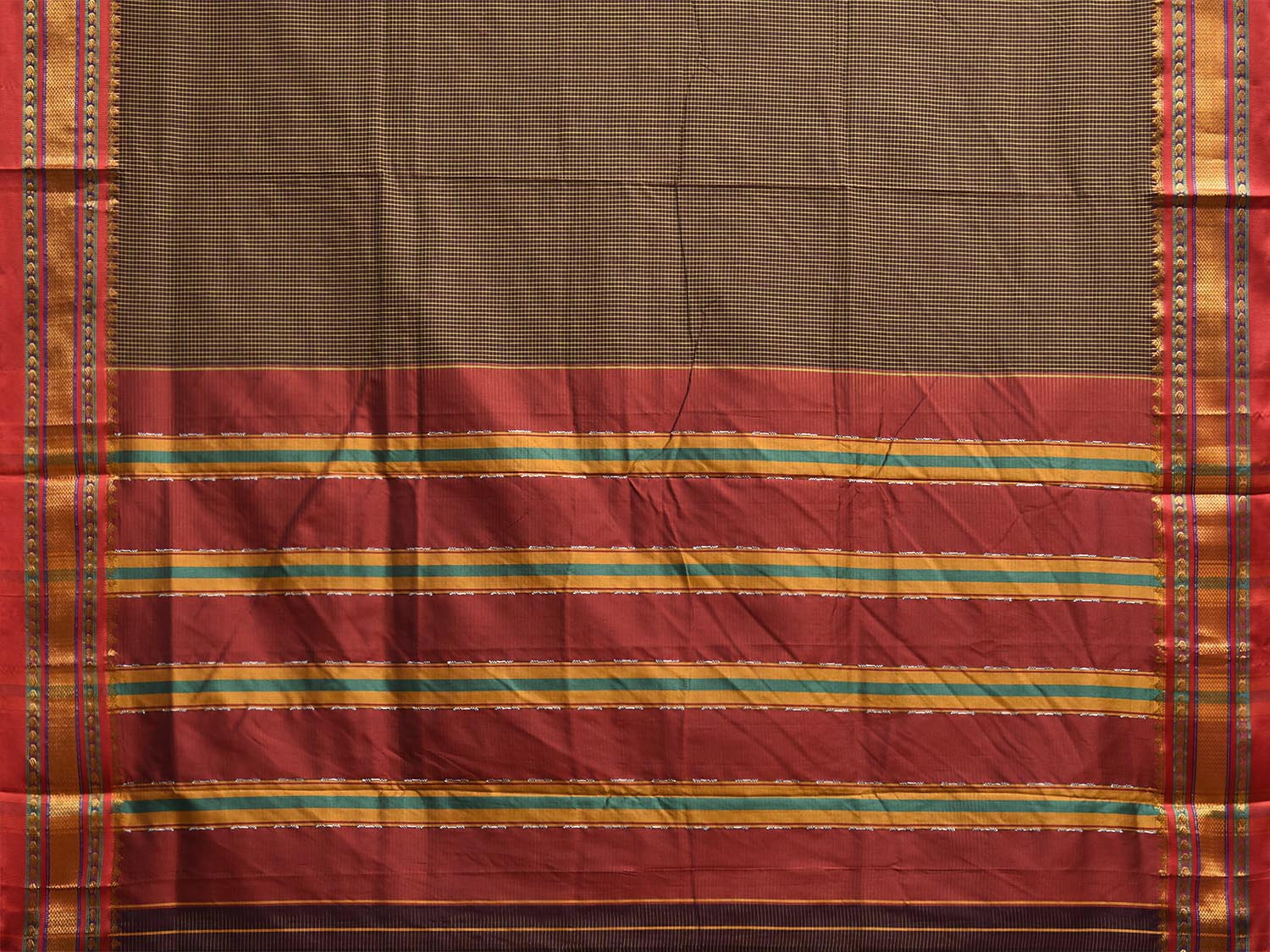 Brown and Red ilkal Viscose Saree with Small Checks and Strips Pallu Design. For fabric care we advise gentle handwash separately.