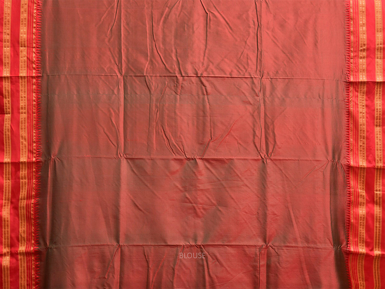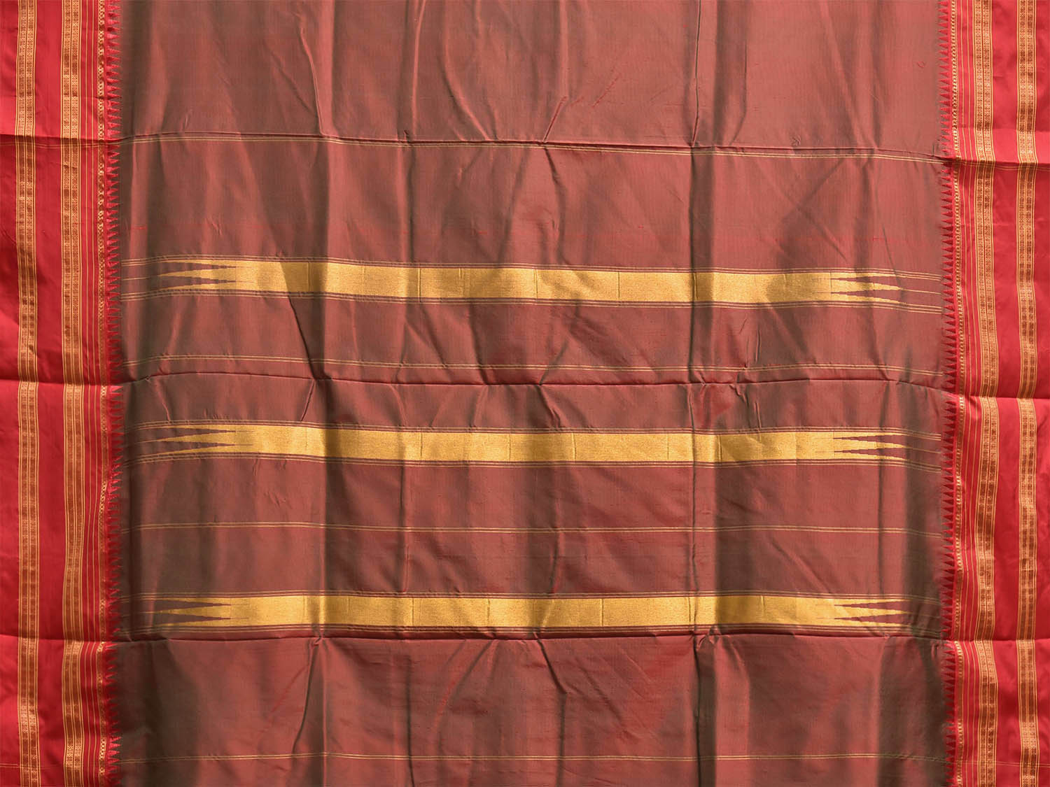 Brown and Red Narayanpet Silk Plain Saree with Contrast Pallu Design np1399