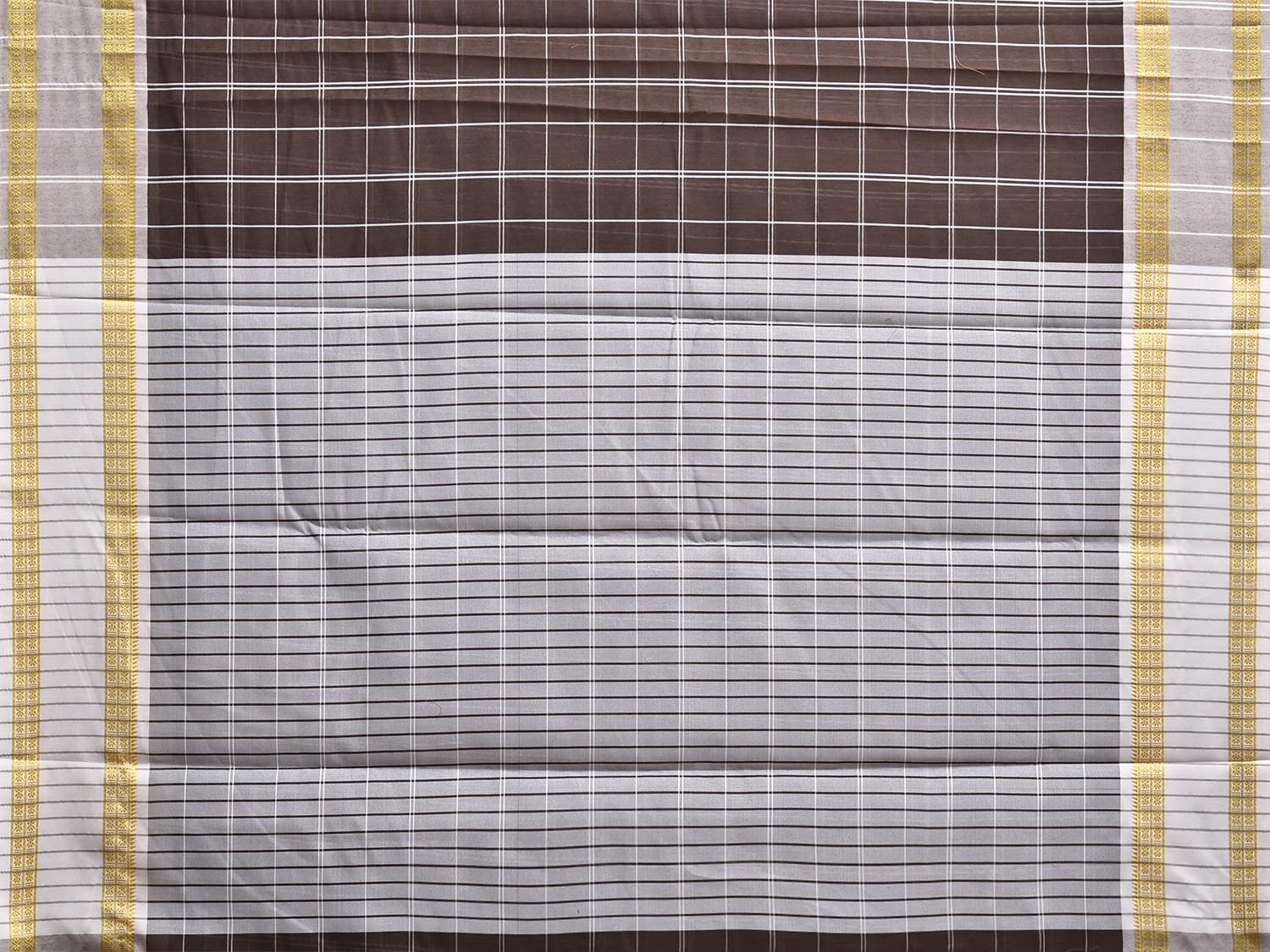 Brown and White Bamboo Cotton Saree with Big Checks Design No Blouse bc0983