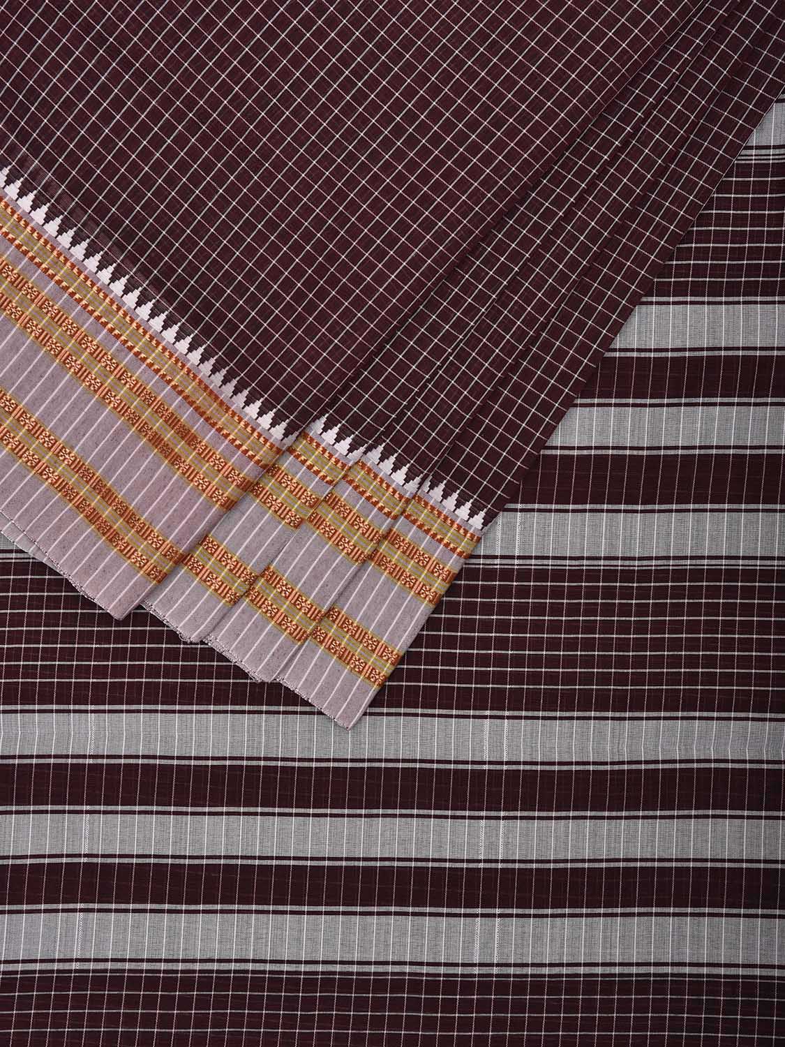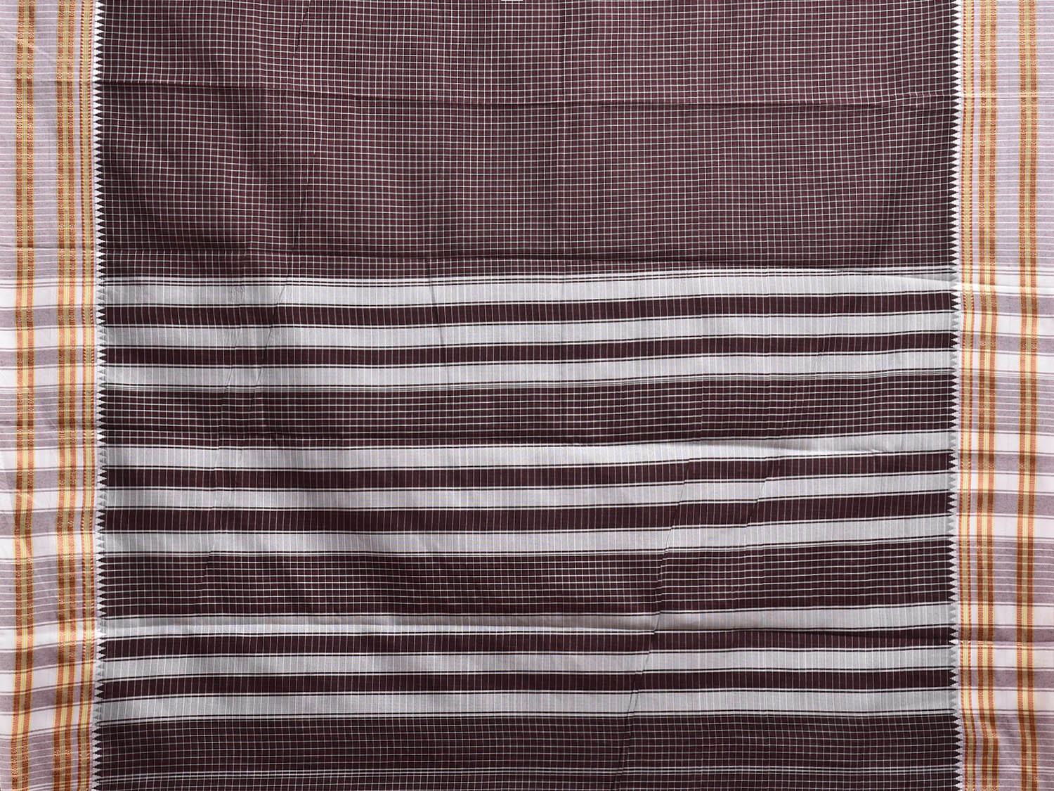 Brown and White Bamboo Cotton Saree with Checks Design No Blouse bc0745
