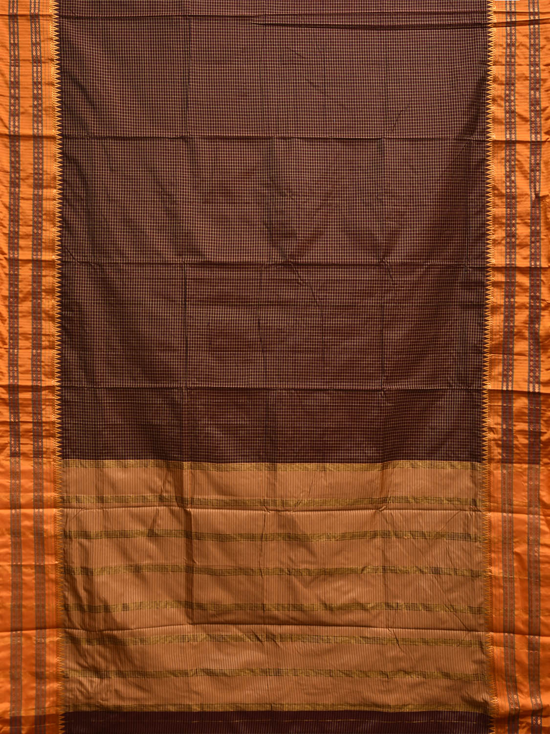 Brown and Yellow Narayanpet Cotton Viscose Saree with Checks Design No Blouse np1160