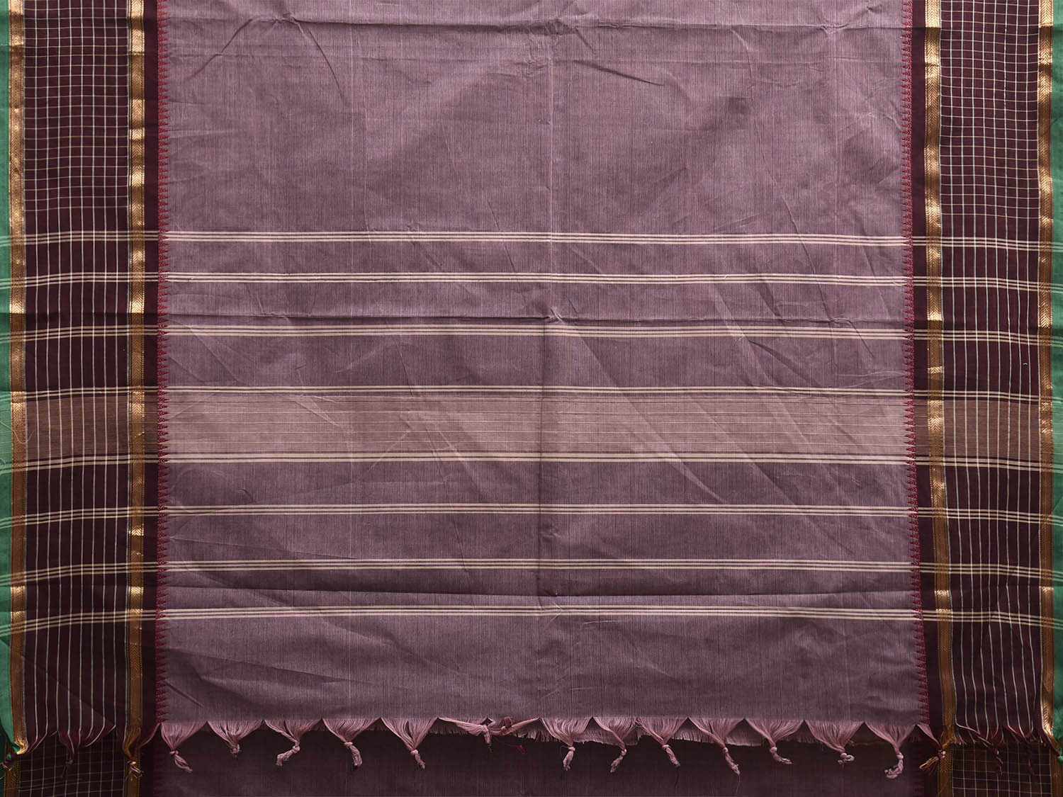 Brown Kanchipuram Cotton Plain Saree with Checks Border Design k0987