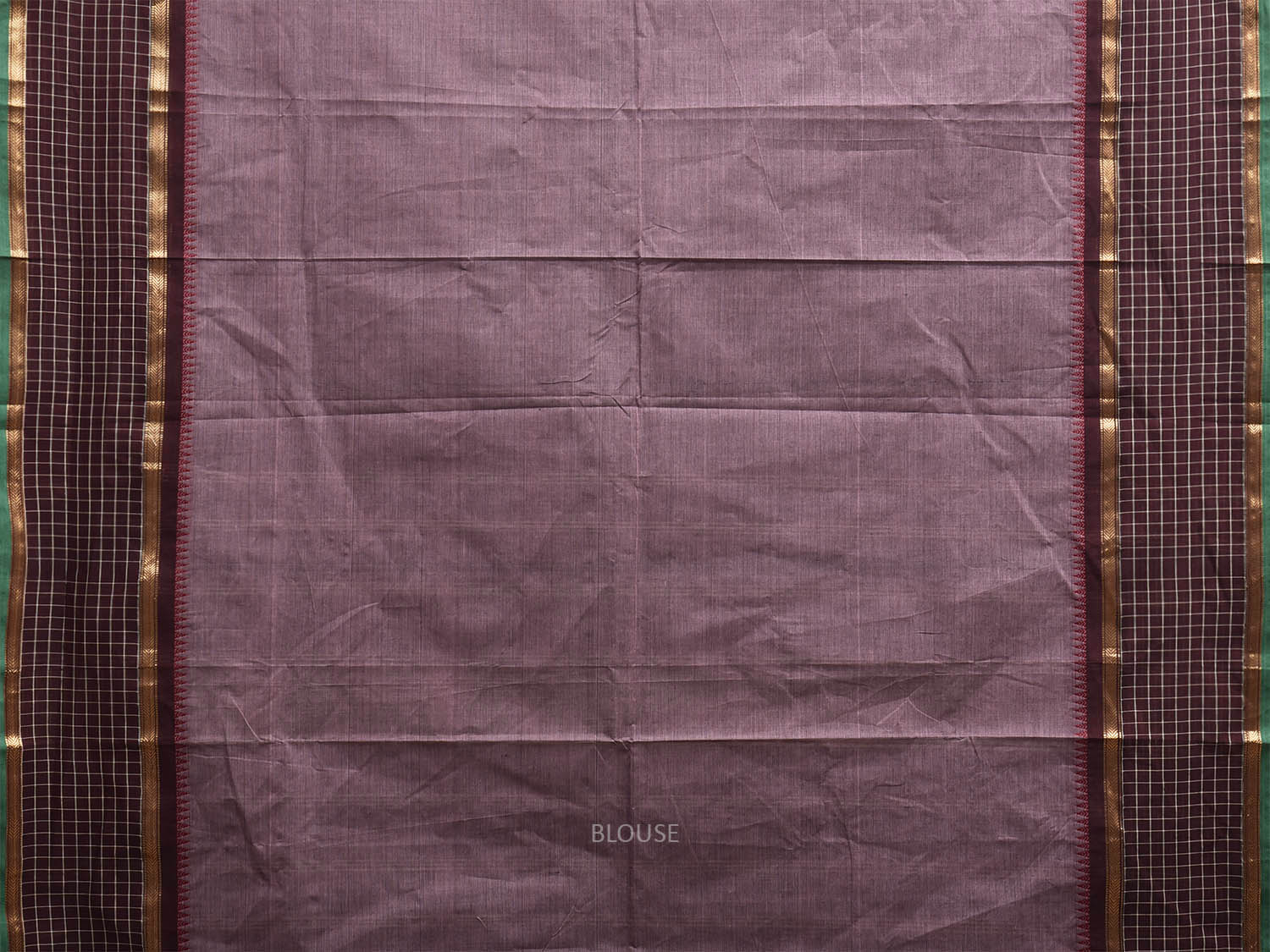 Brown Kanchipuram Cotton Plain Saree with Checks Border Design. Traditional Simple South Indian Attire Saree for any Casual Occasions. As it’s a cotton saree we advice gentle handwash separately for fabric care.