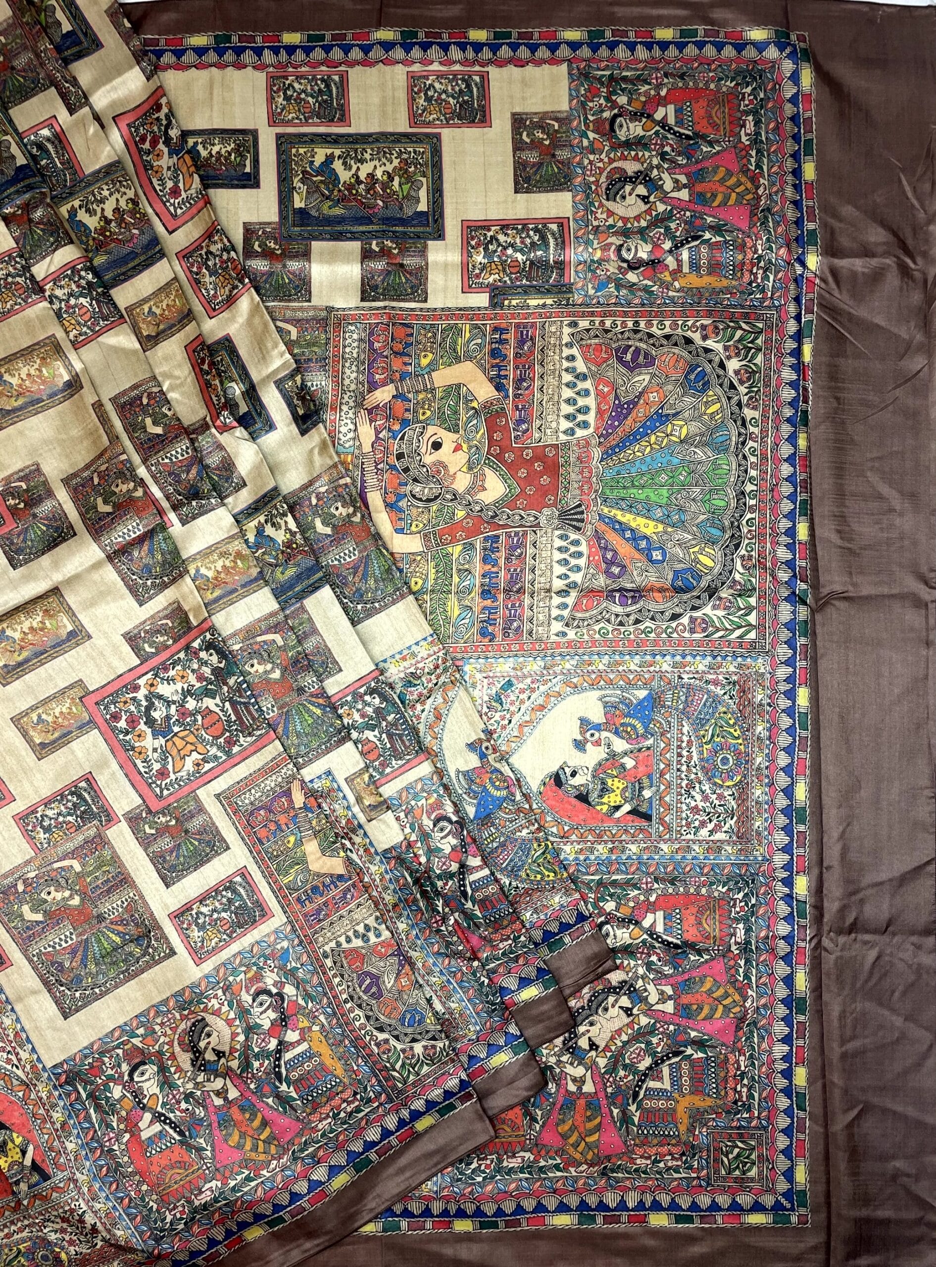 Brown Madhubani Digital Printed Saree with Figures Design pr0063ap