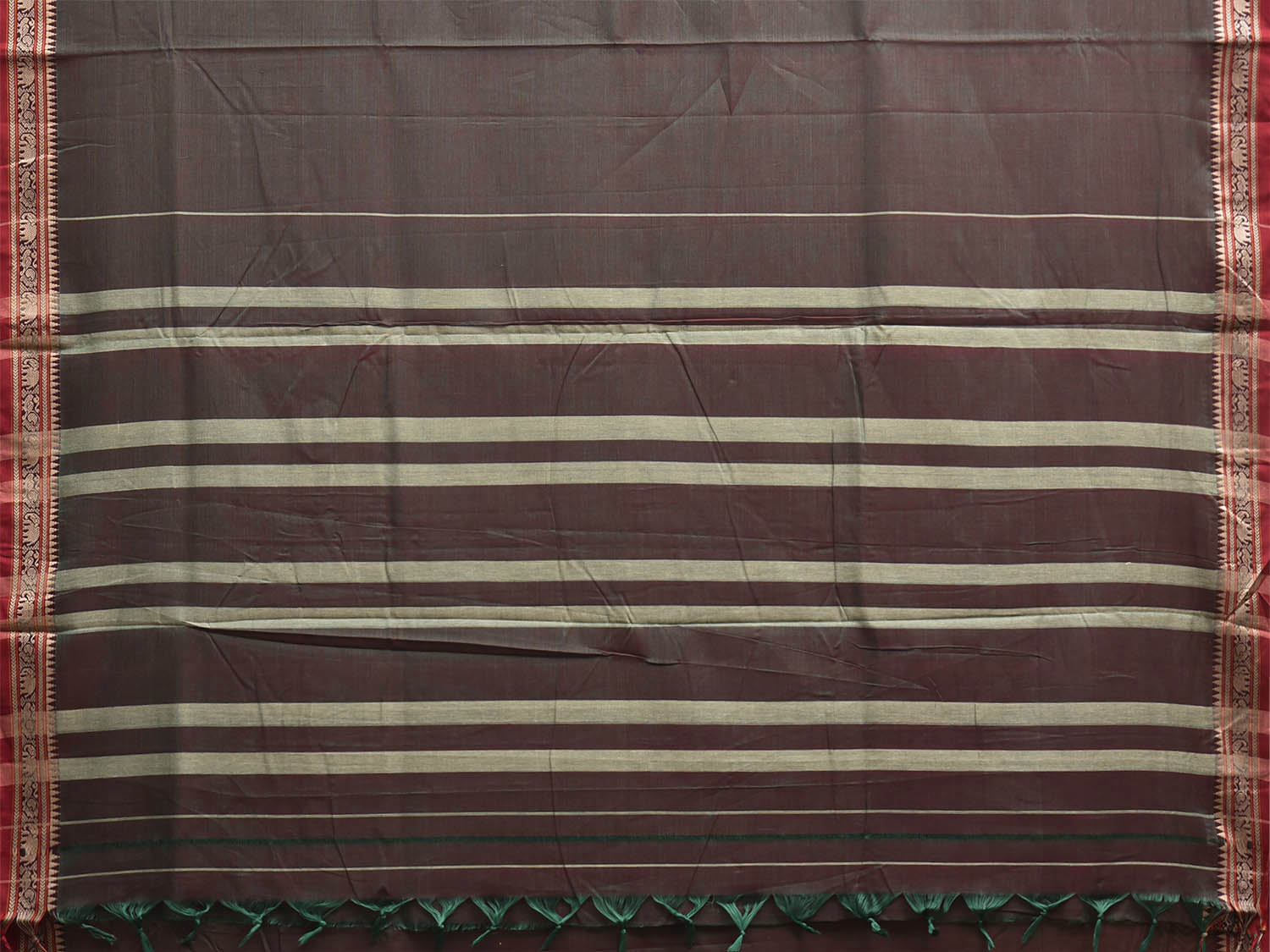 Brown Narayanpet Cotton Handloom Plain Saree with Strips Pallu Design No Blouse. This saree has no blouse.