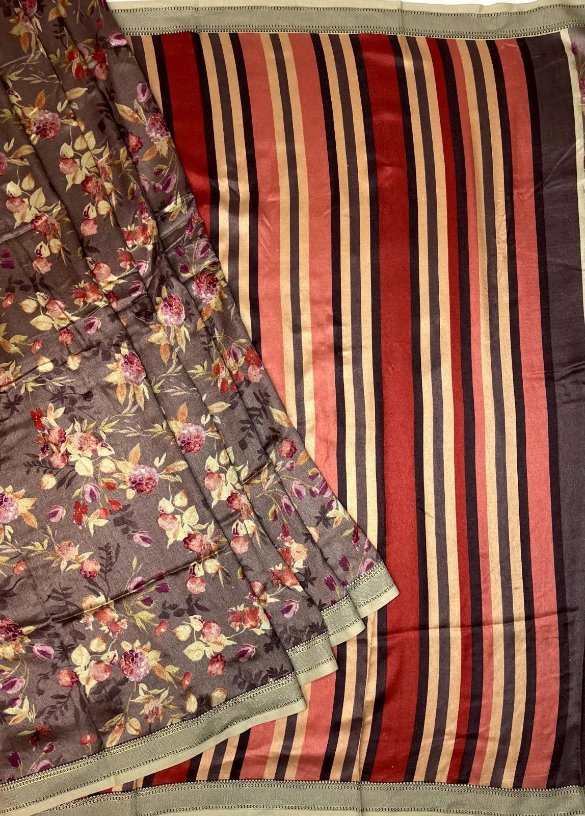 Brown Viscose Silk Saree with Border and Floral Digital Print Design pr0082us