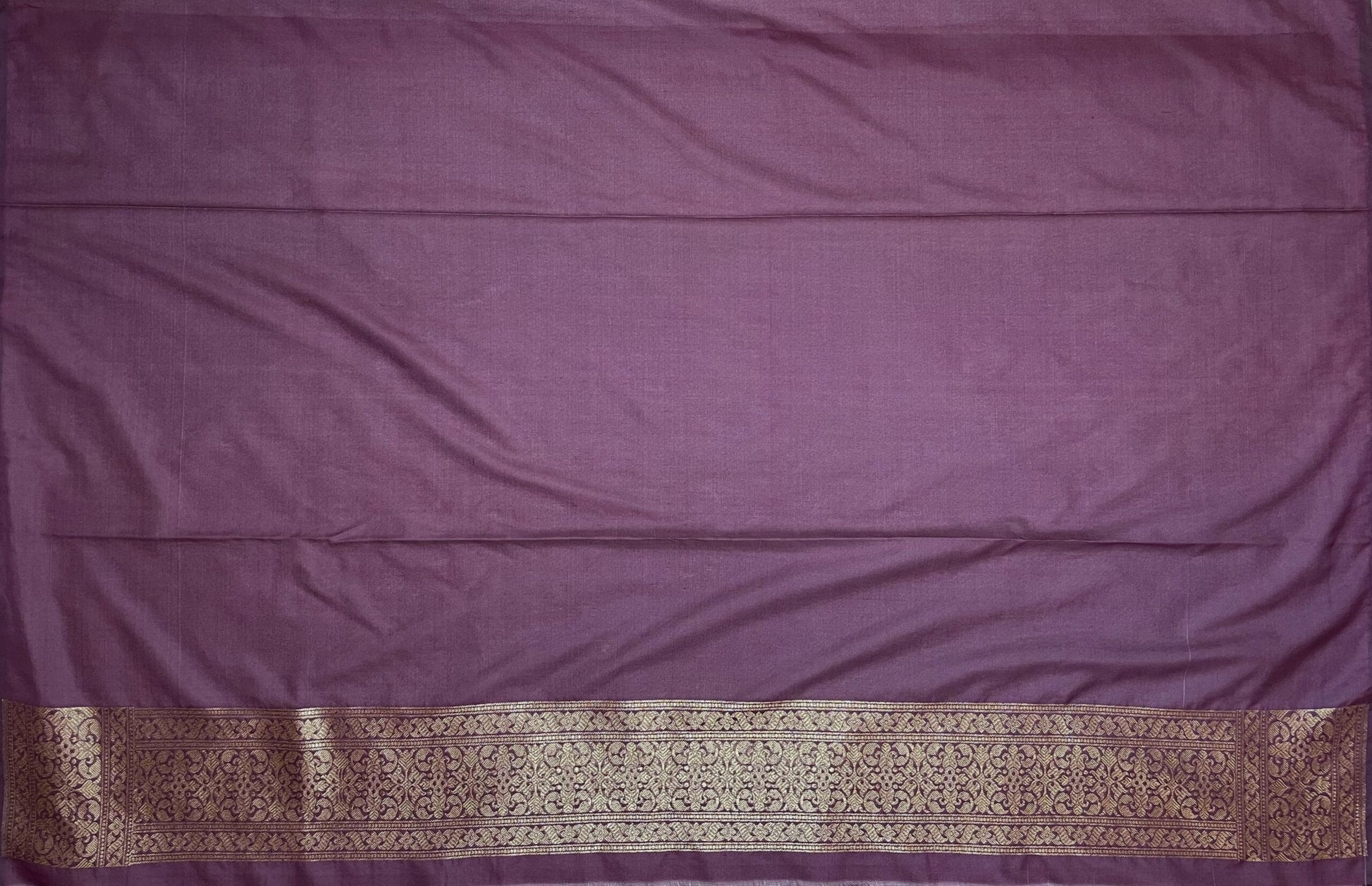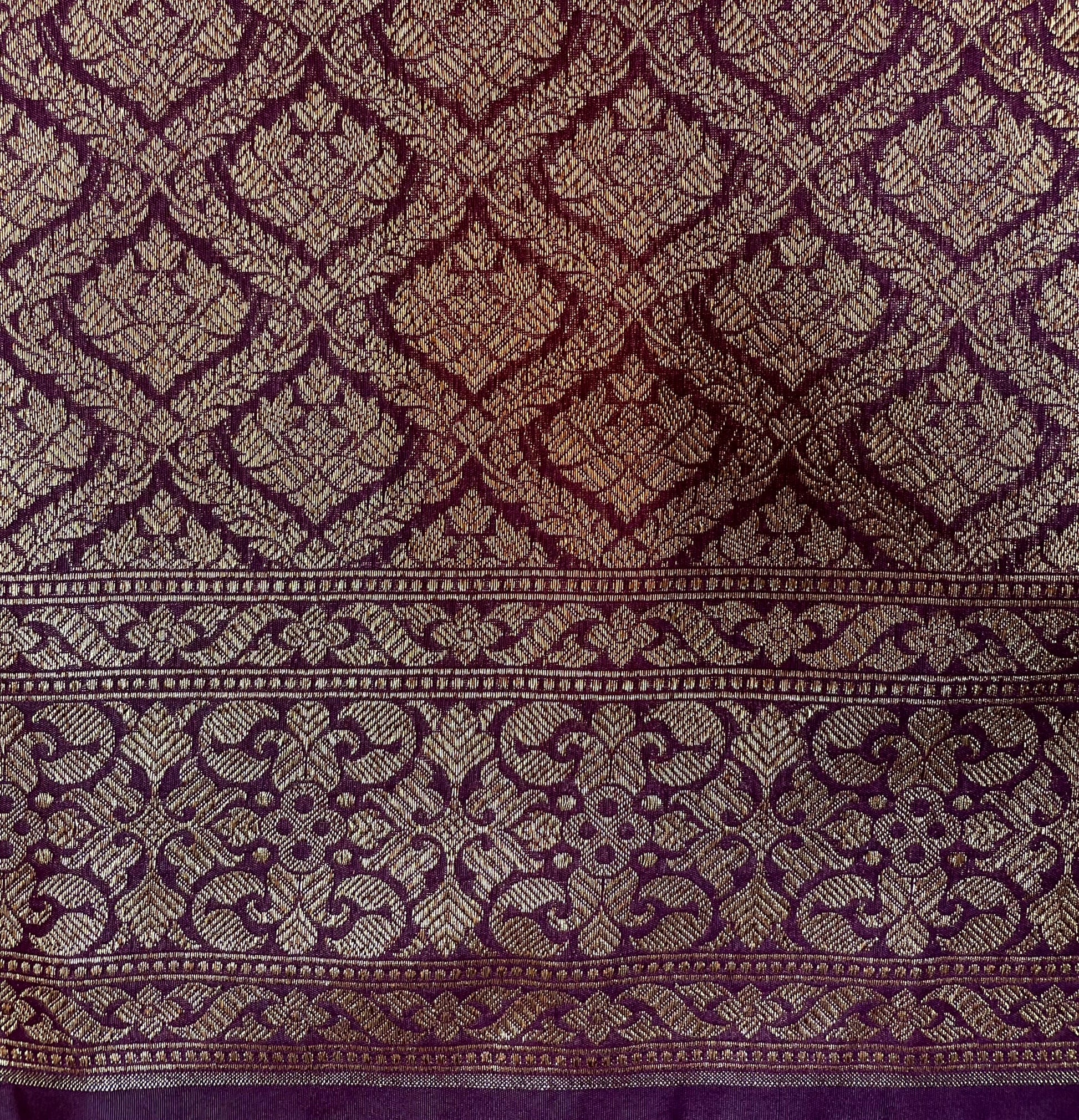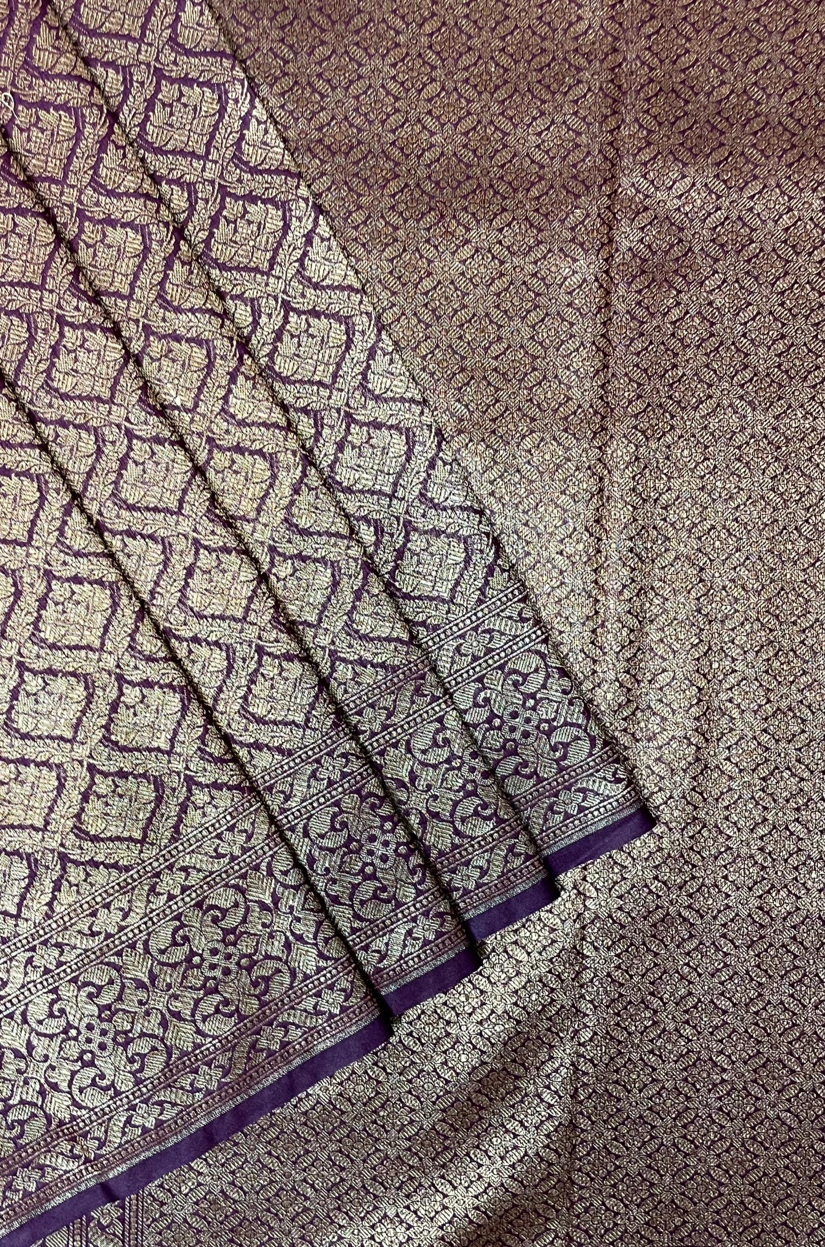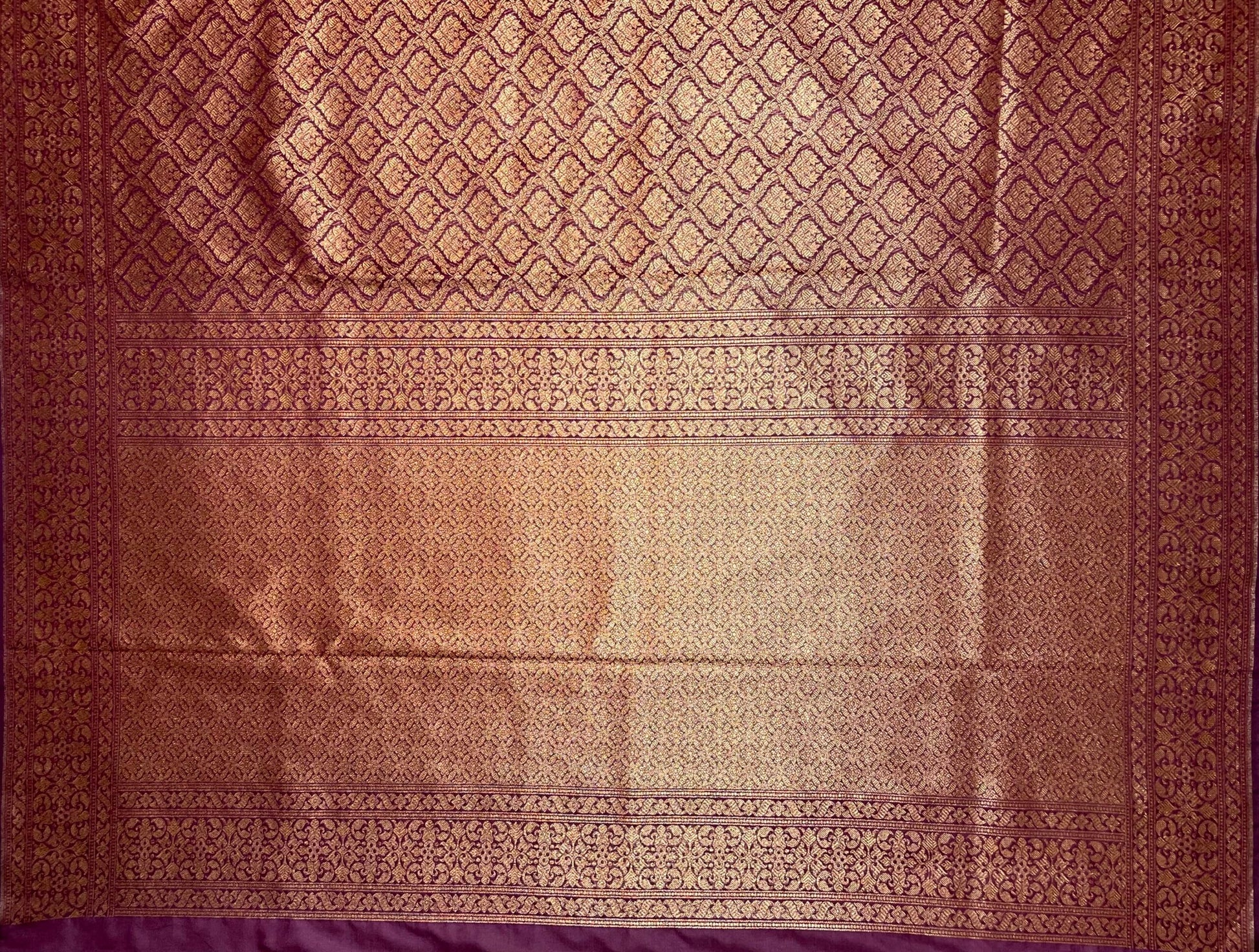 Burgundy Banaras Katan Intricate Allover Brocade Saree with Antique Zari Border and Pallu Design