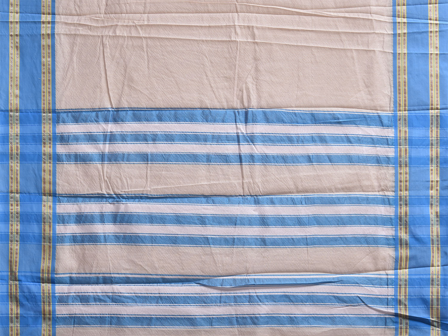 Cream and Blue Bamboo Cotton Saree with Small Checks Design No Blouse bc1061