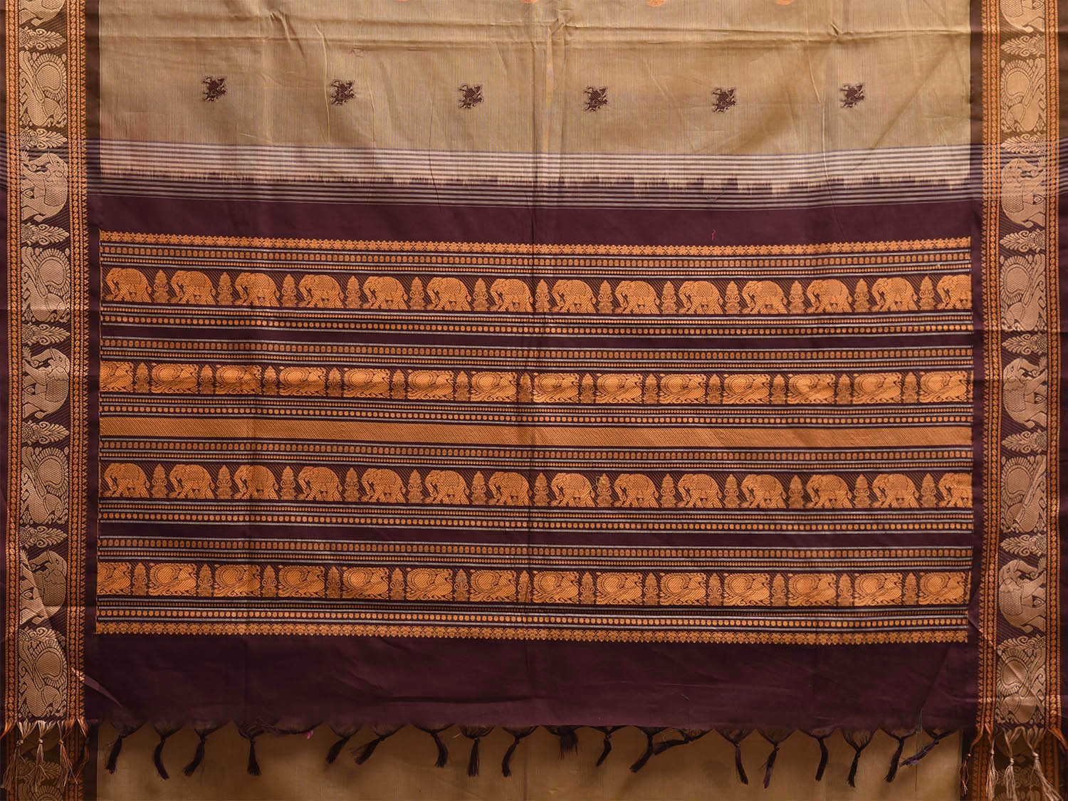 Cream and Brown Kanchipuram Cotton Saree with Checks and Pallu Design k0979