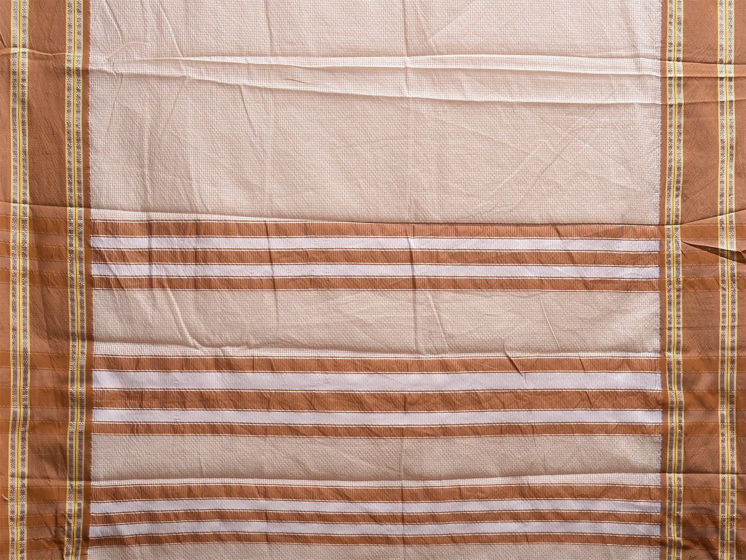 Cream and Fawn Bamboo Cotton Saree with Small Checks Design No Blouse bc0885