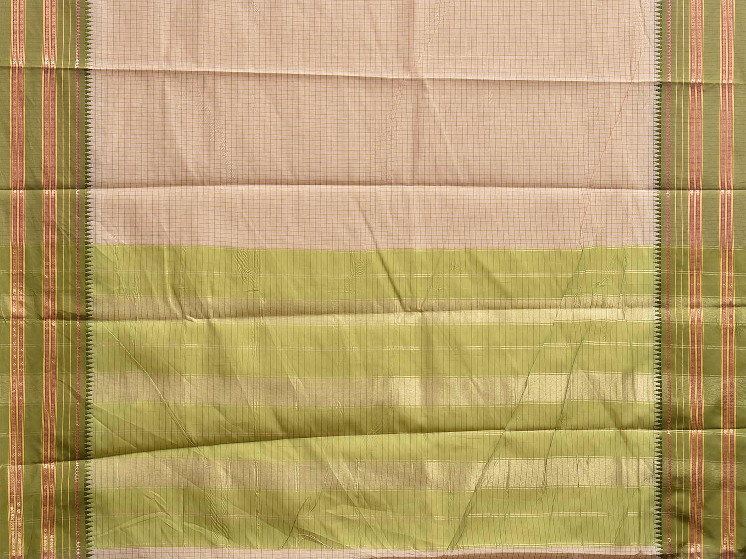 Cream and Green Bamboo Cotton Saree with Checks Design No Blouse bc1005