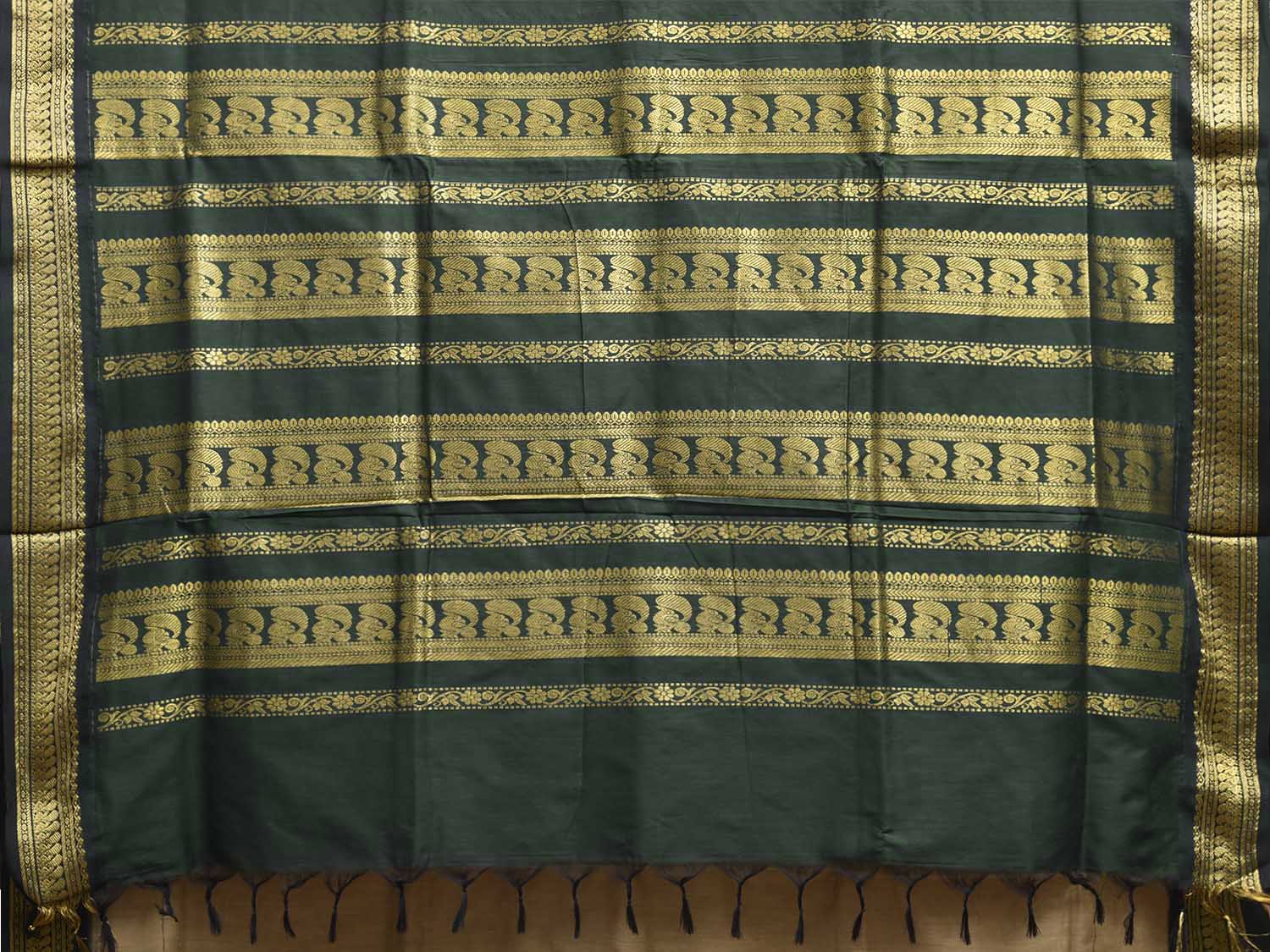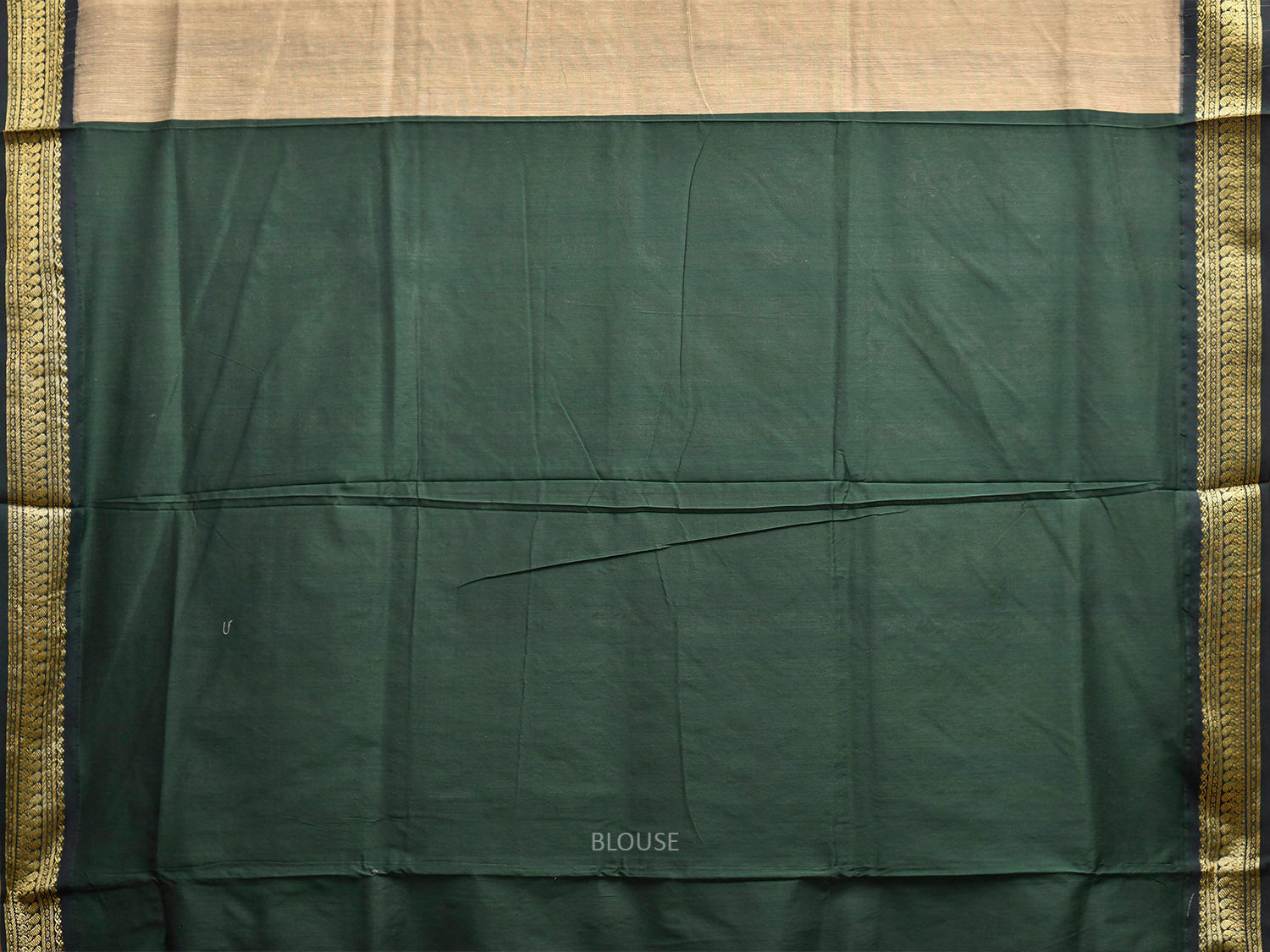 Cream and Green Gadwal Cotton Viscose Saree with Border and Pallu Design g0580