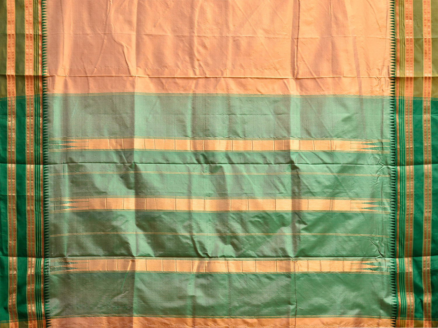 Cream and Green Narayanpet Silk Plain Saree with Contrast Pallu Design No Blouse. These are Traditional Narayanpet Design Sarees. For fabric care we advise dry clean. This Saree has no Blouse.