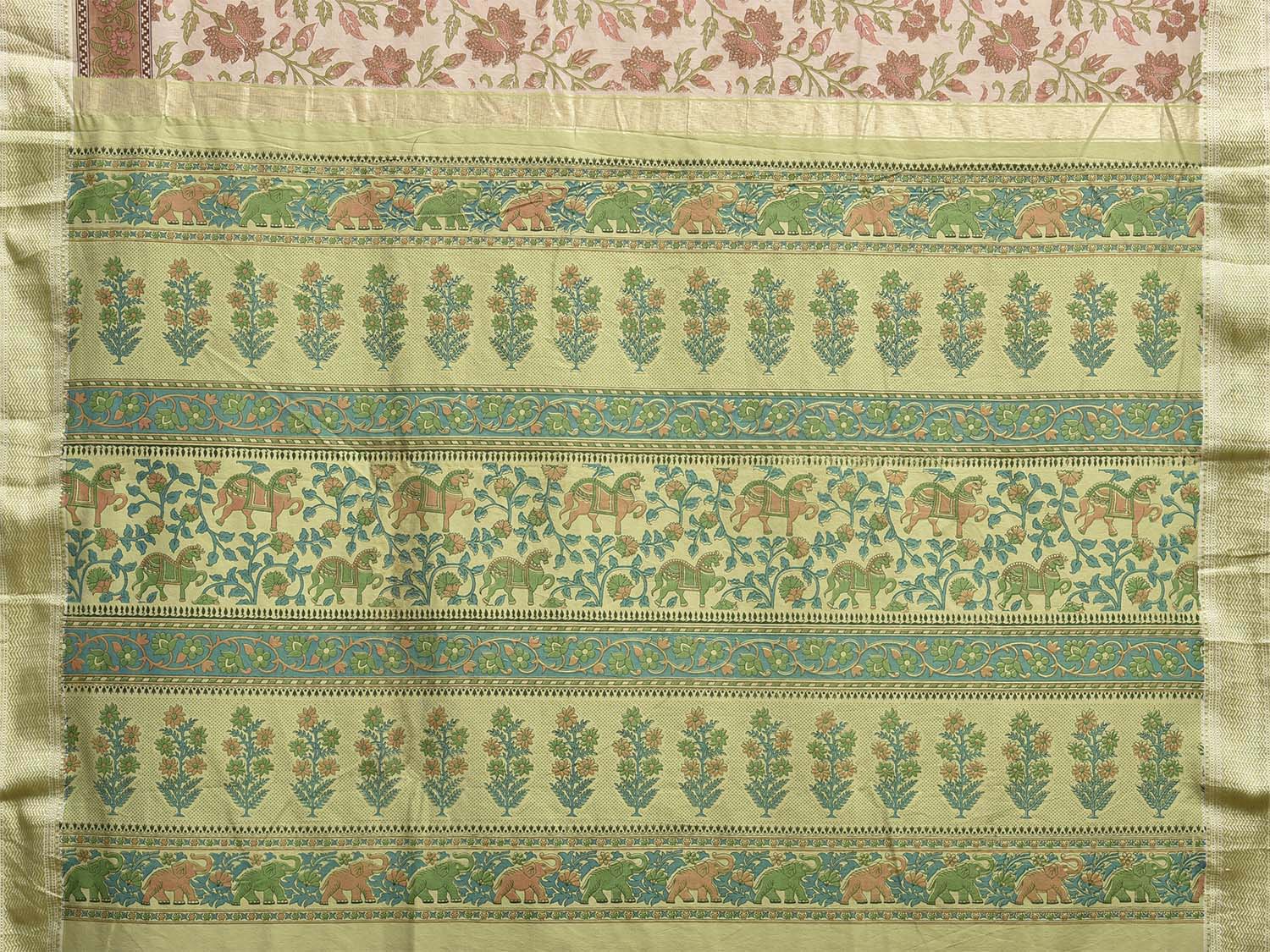 Cream and Light Green Bamboo Cotton Saree with Floral Digital Print Design bc0972