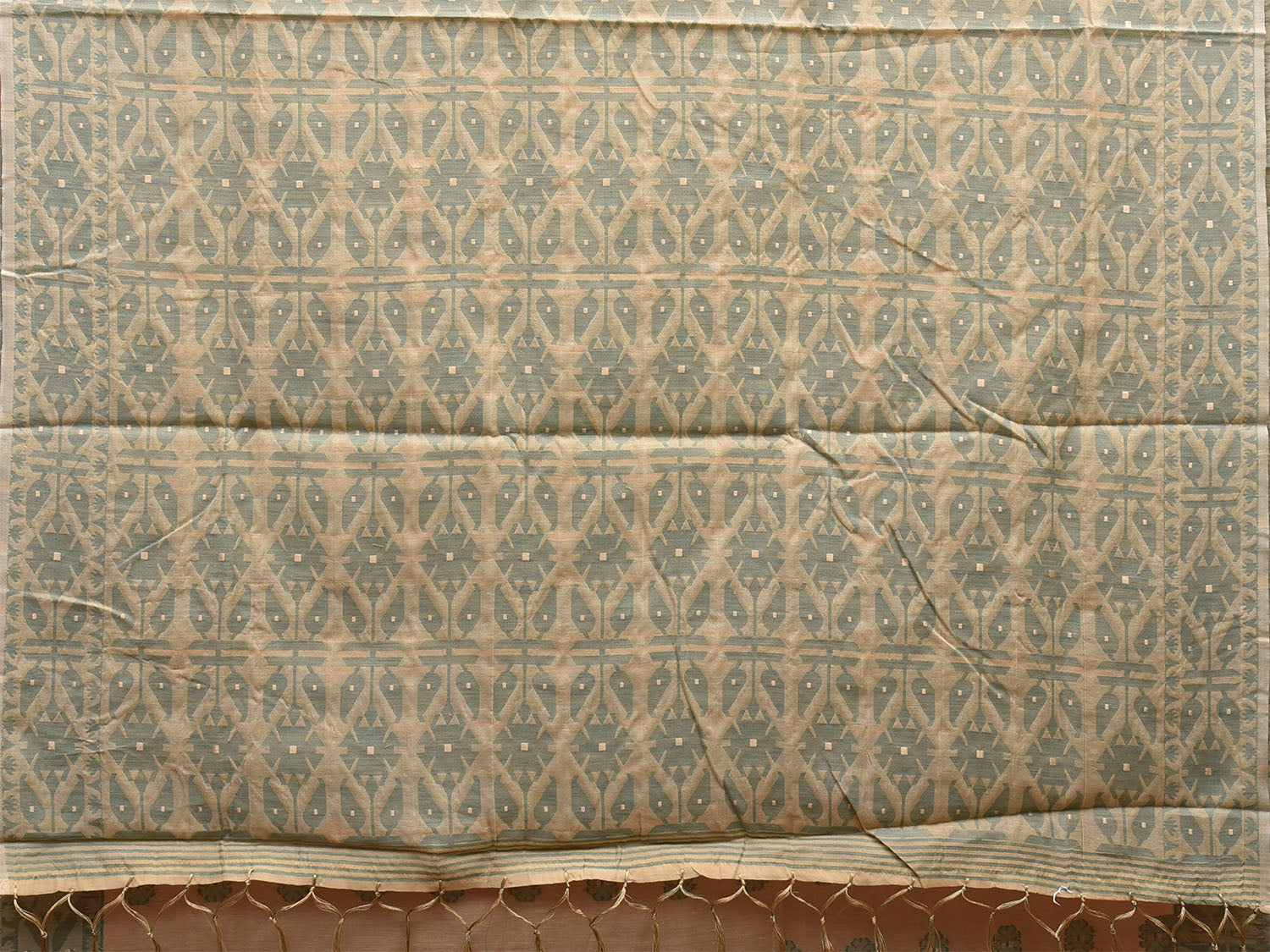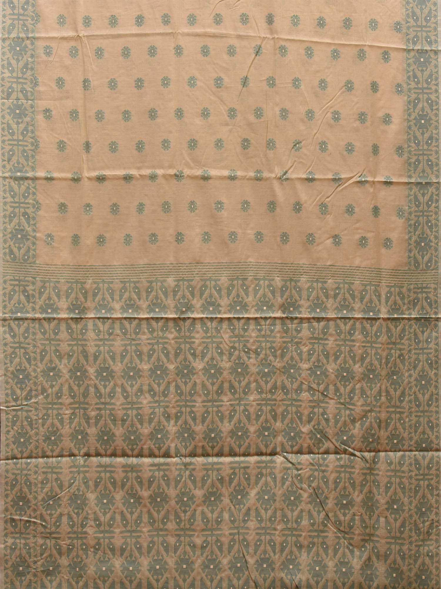 Cream and Light Green Dhakai Jamdani Cotton Viscose Saree with Buta and Pallu-Border Design dj0017