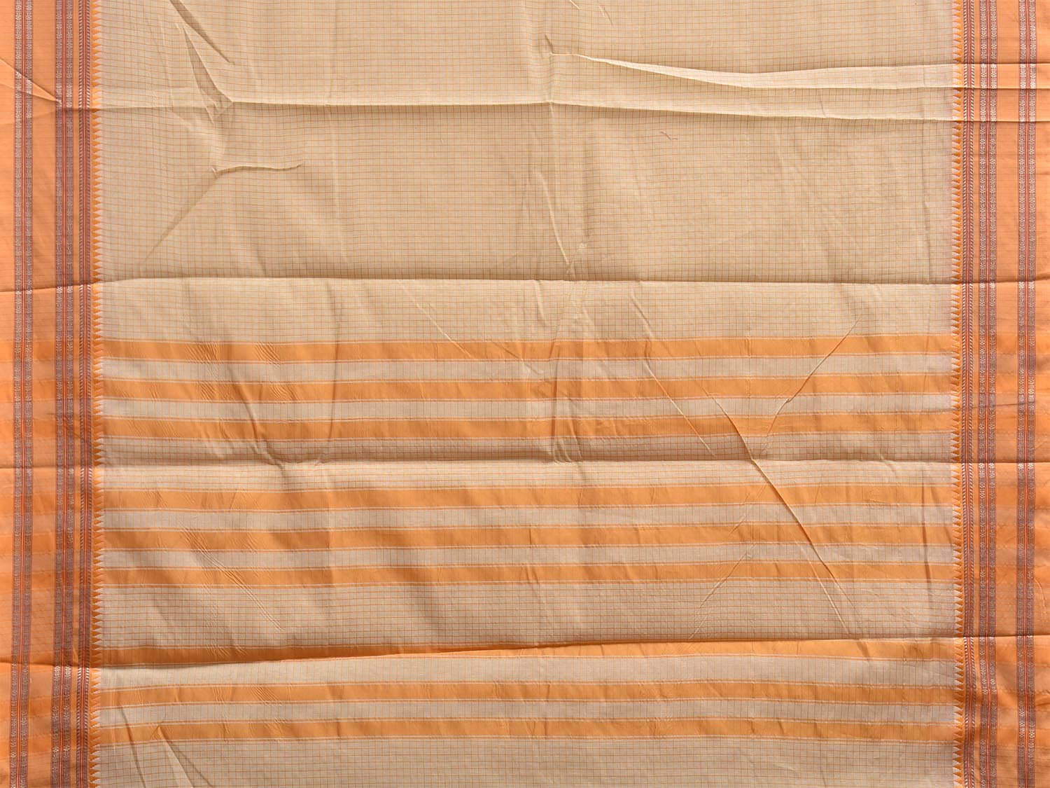 Cream and Light Orange Bamboo Cotton Saree with Checks Design No Blouse bc0996