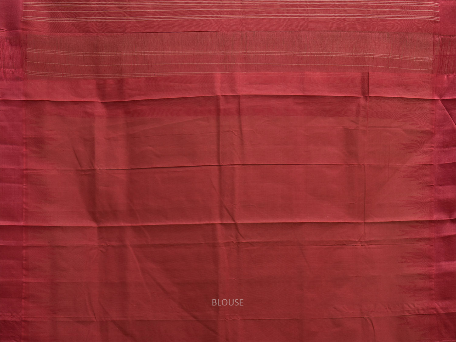 Cream and Maroon Khadi Cotton Handloom Plain Saree with Big Temple Border kh0726