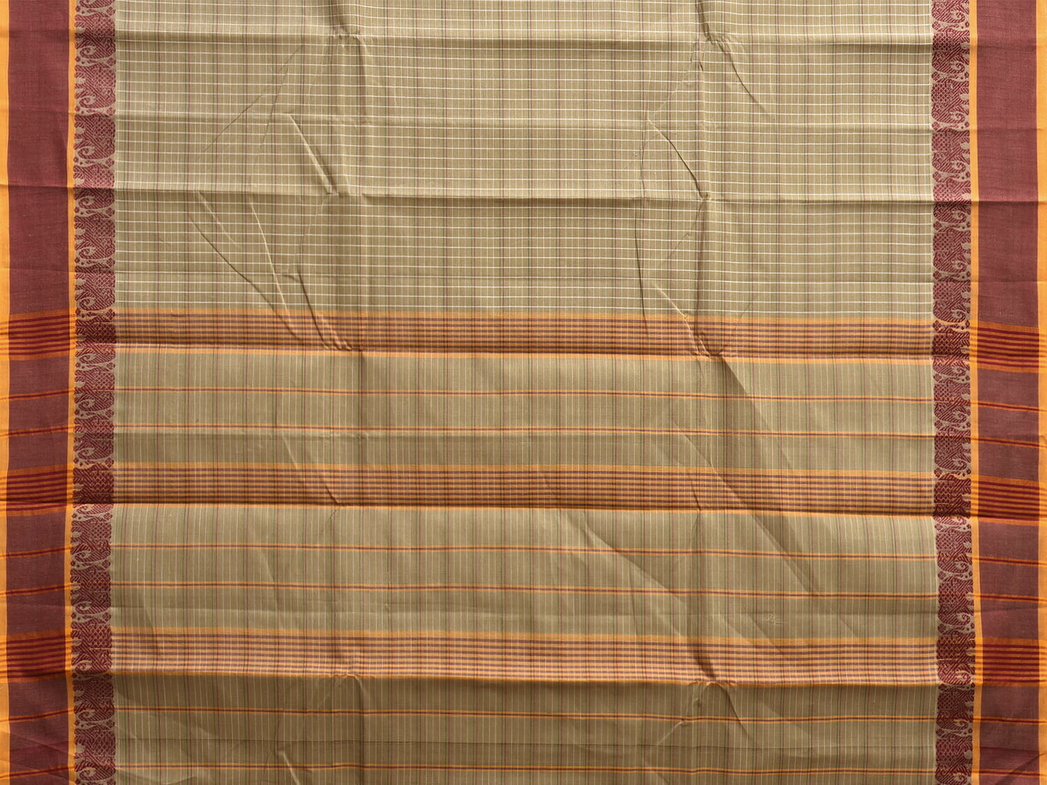 Cream and Maroon Narayanpet Cotton Handloom Saree with Strips and Elephant Border Design No Blouse np1250