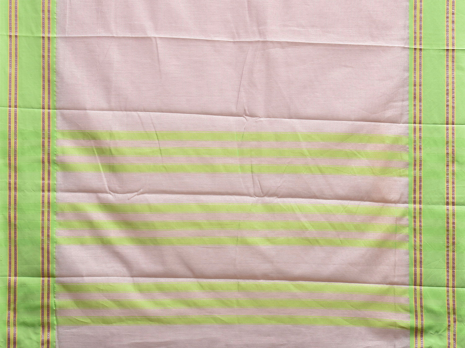 Cream and Neon Green Bamboo Cotton Saree with Small Checks Design No Blouse. This is a blend of bamboo and cotton fibers, they have characteristics of both bamboo and cotton combined into one fabric. We Advise Gentle Handwash for Fabric Care. This Saree has no Blouse.