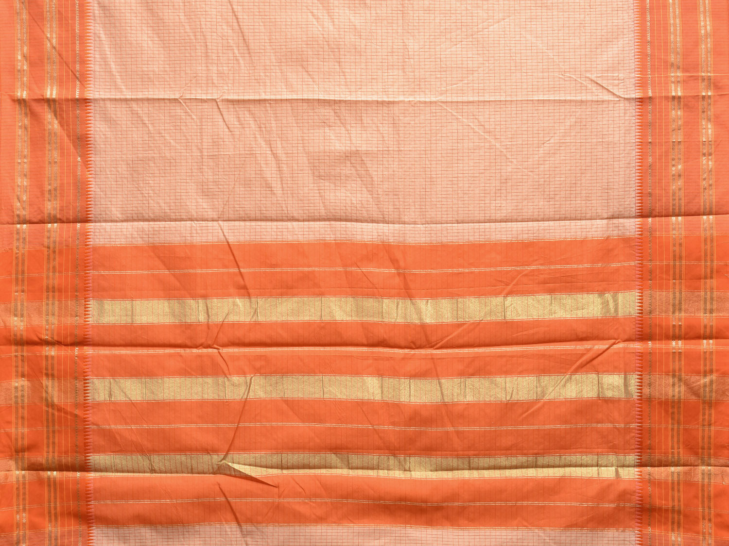 Cream and Orange Bamboo Cotton Viscose Silk Saree with Checks Design No Blouse bc0467