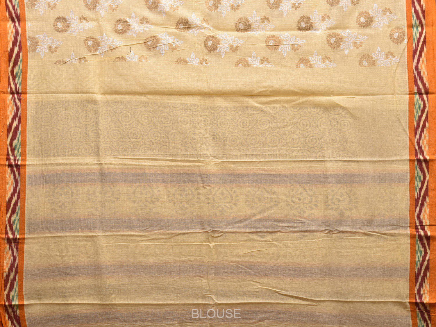 Cream and Orange Cotton Saree with Ikat Border and Khadi Print Design o0476