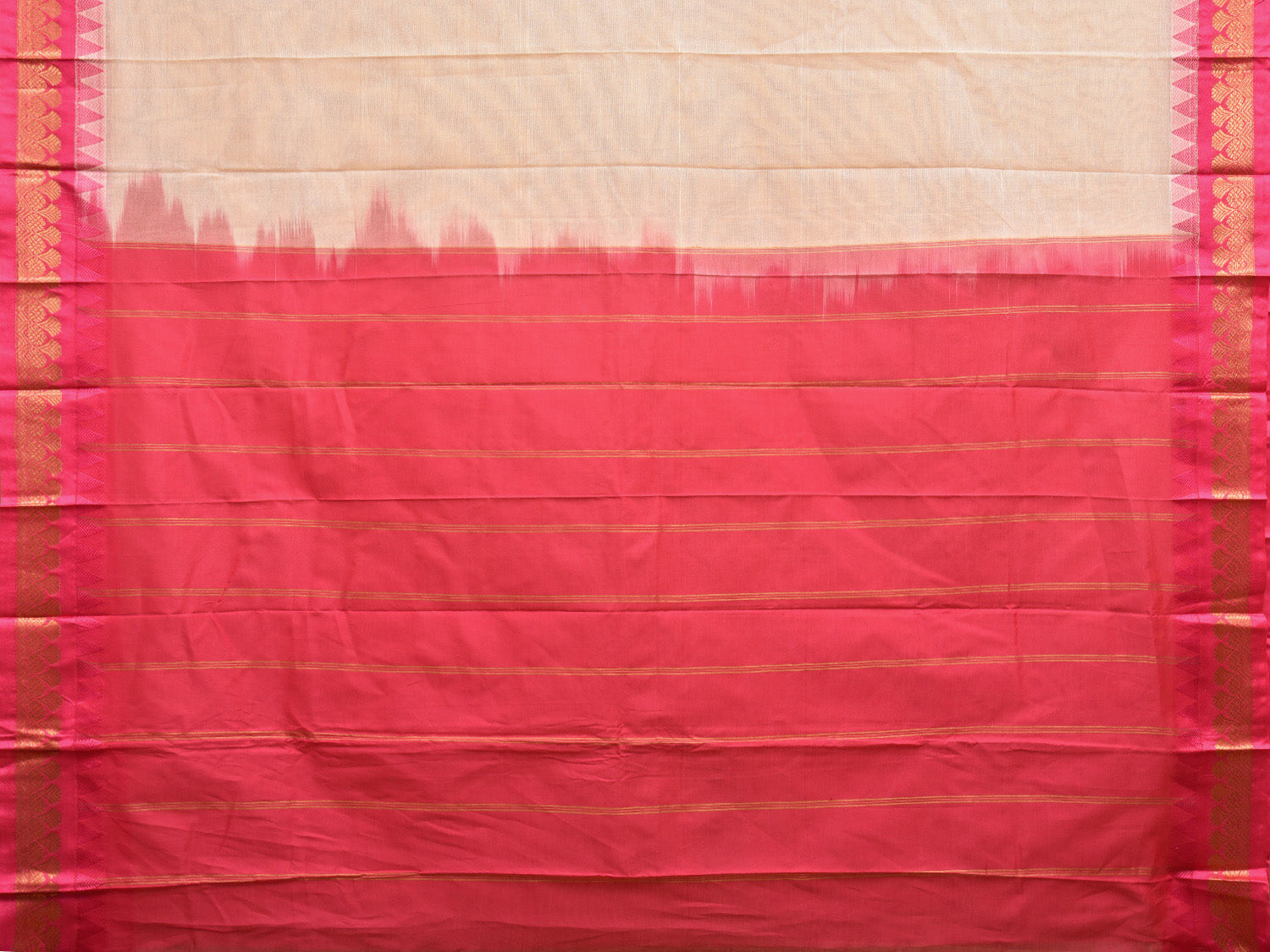 Cream and Pink Gadwal Cotton Plain Saree with Strips Pallu and Border Design No Blouse g0392
