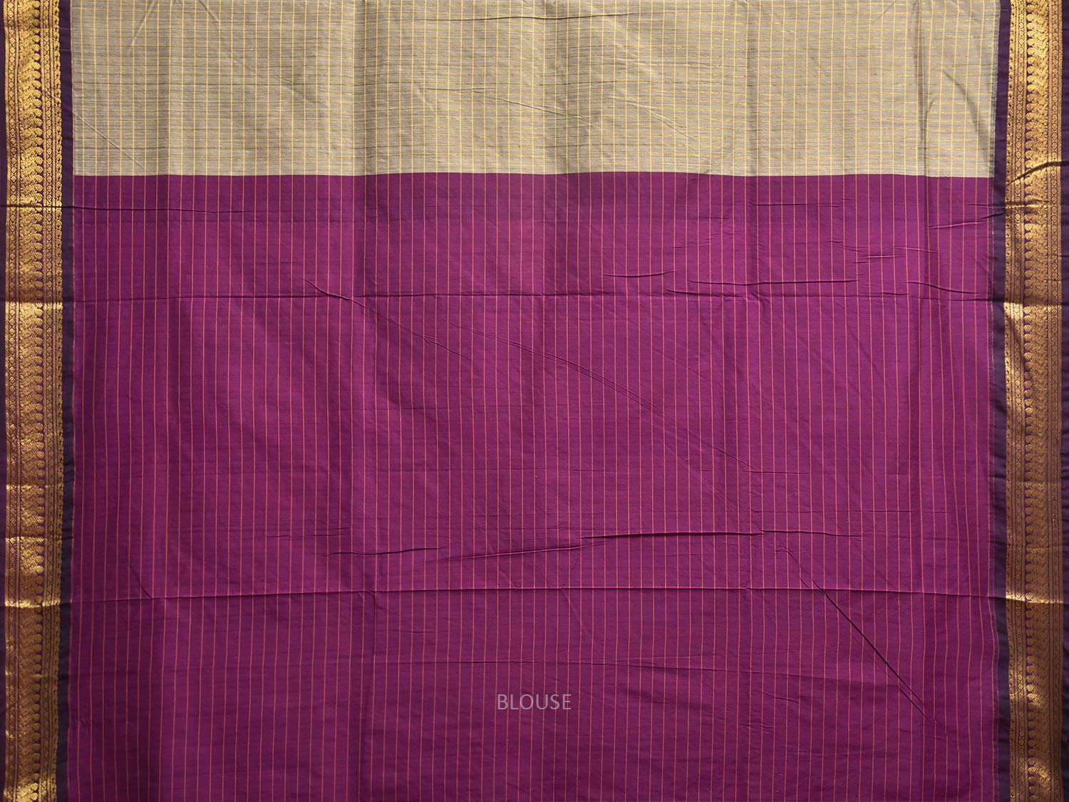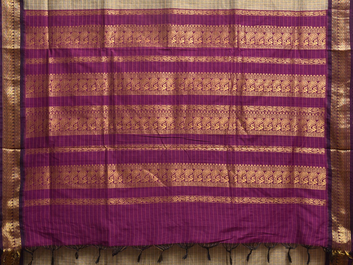 Cream and Purple Gadwal Cotton Viscose Saree with Checks and Pallu Design g0594
