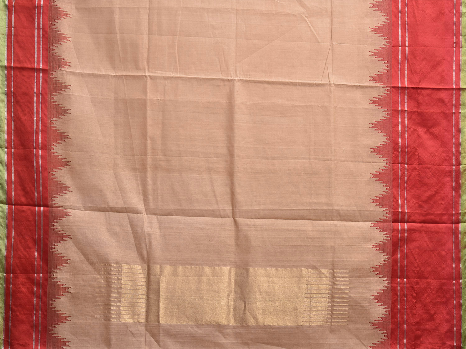 Cream and Red Khadi Cotton Handloom Plain Saree with Big Temple Border kh0722