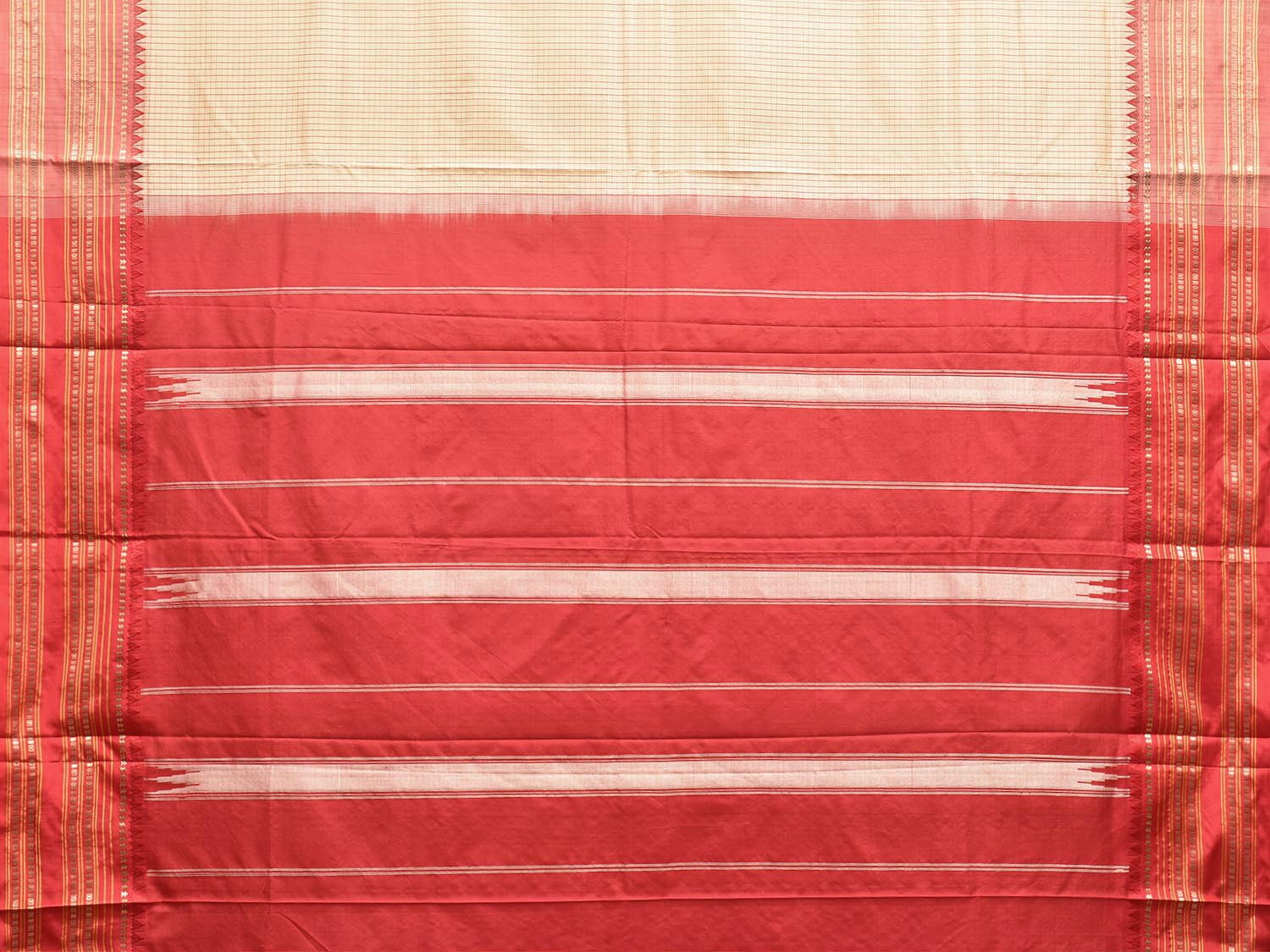 Cream and Red Narayanpet Silk Saree with Checks Design np1548