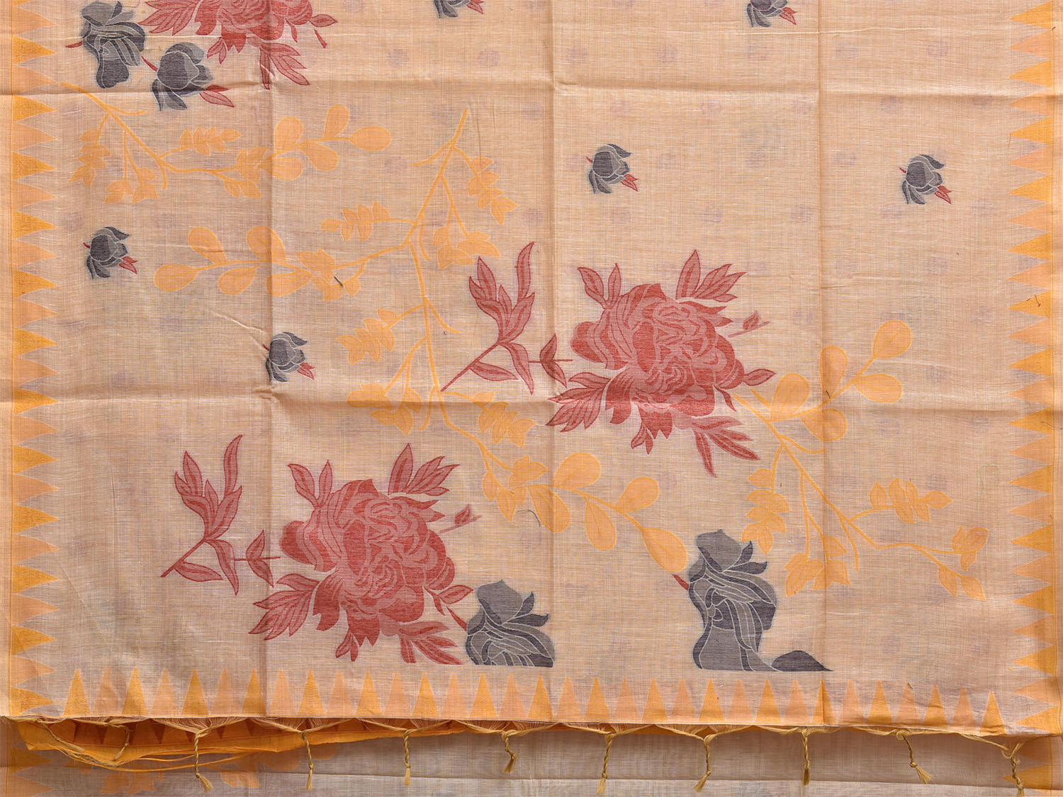 Cream and Yellow Dhakai Jamdani Cotton Viscose Saree with Floral Pallu and Border Design dj0257