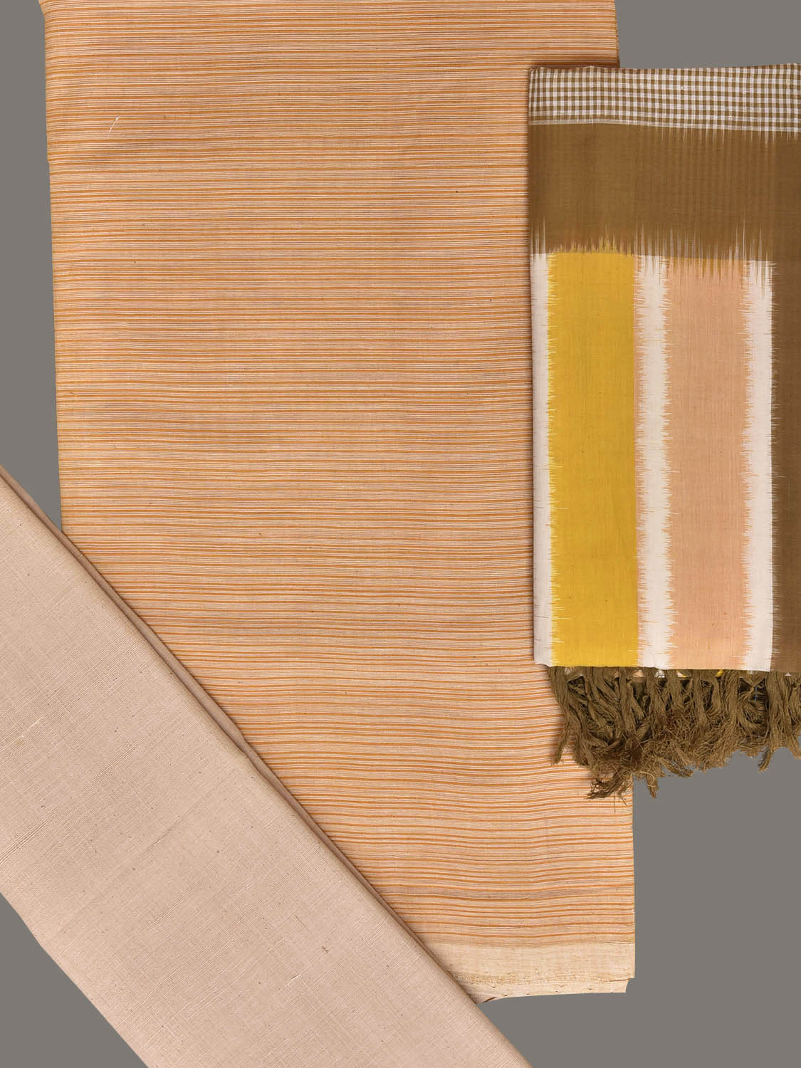 Cream and Yellow Pochampally Ikat Cotton Handloom Dress Material with Top Bottom and Dupatta dm0106