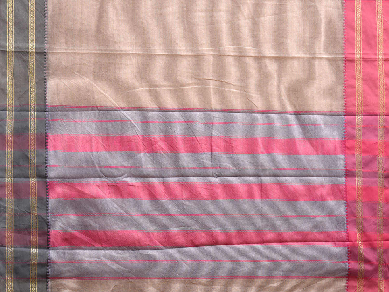 Cream Bamboo Cotton Saree with Strips and Ganga-Jamuna Border Design No Blouse bc0724