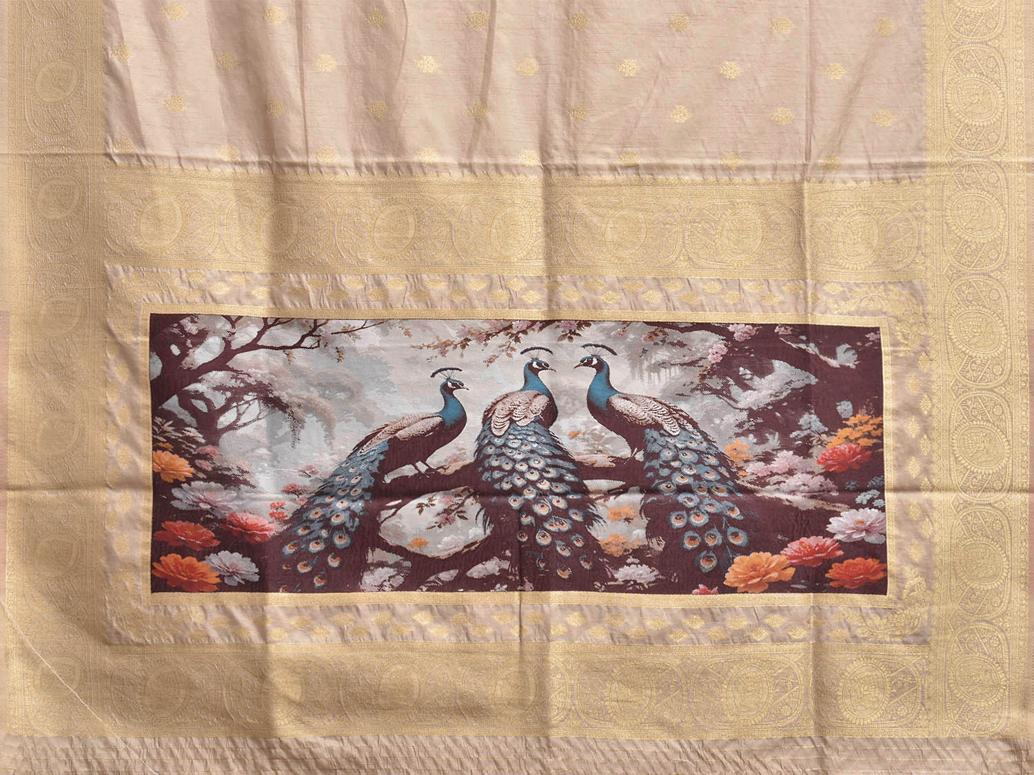 Cream Banaras Katan Viscose Saree with Peacocks Pallu and Border Design b0319