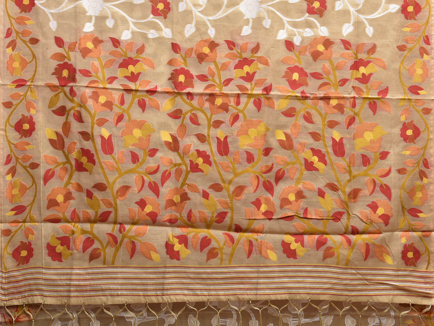 Cream Dhakai Jamdani Cotton Viscose Saree with All Over Floral Design dj0188