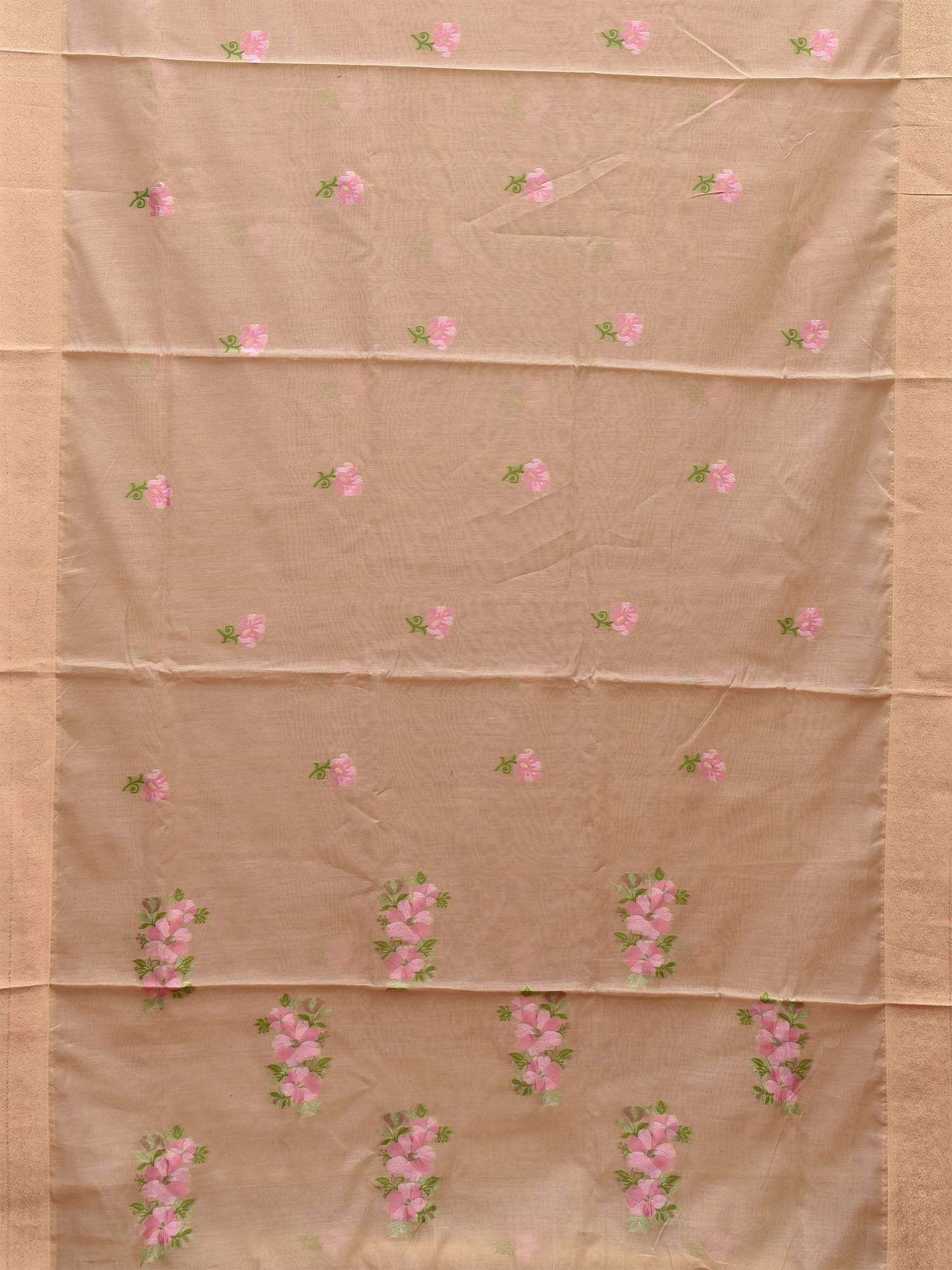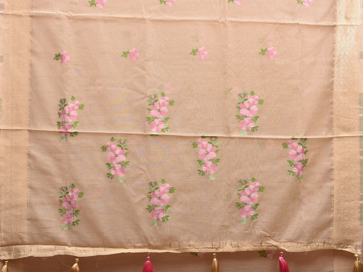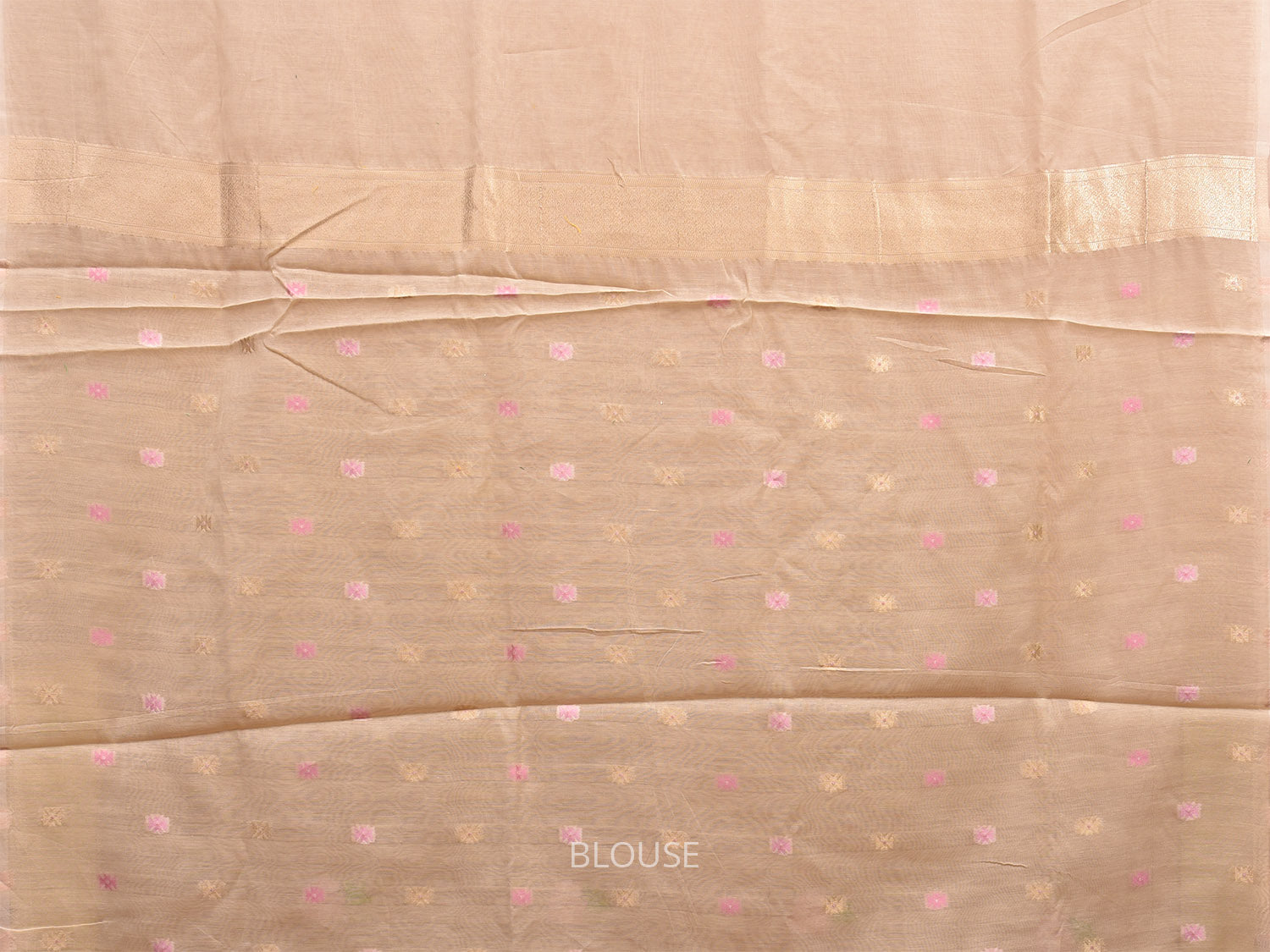Cream Dhakai Jamdani Cotton Viscose Saree with Body Buta and Floral Pallu Design dj0022
