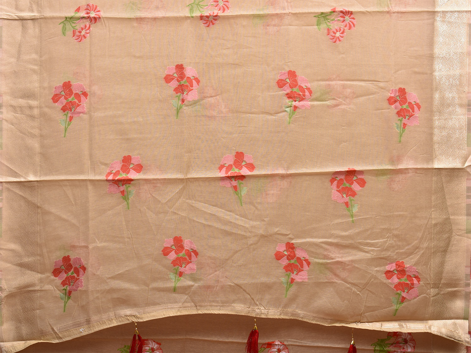 Cream Dhakai Jamdani Cotton Viscose Saree with Body Buta and Floral Pallu Design dj0023