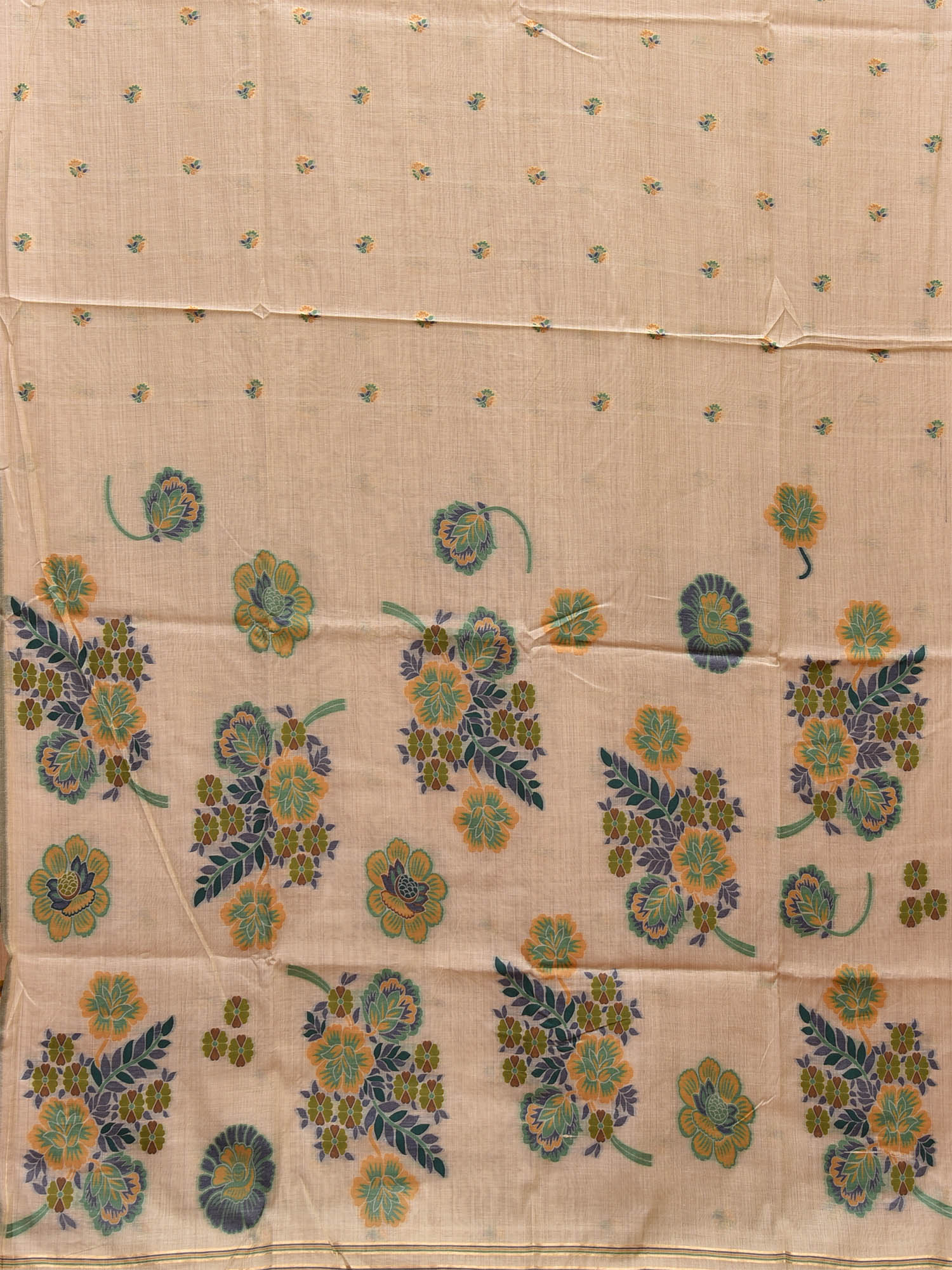 Cream Dhakai Jamdani Cotton Viscose Saree with Buta and Floral Pallu Design dj0019