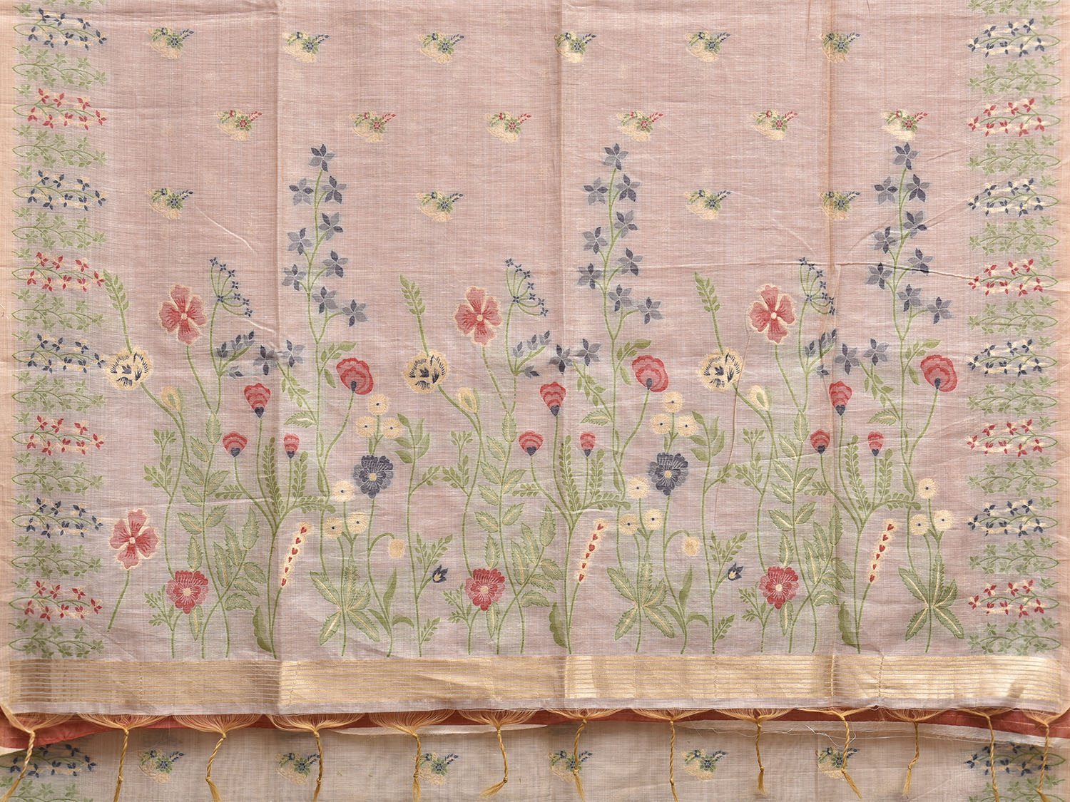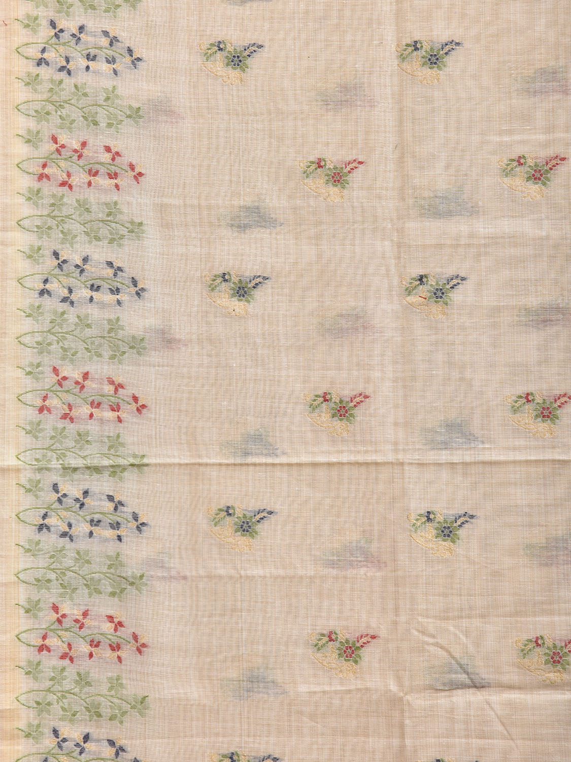 Cream Dhakai Jamdani Cotton Viscose Saree with Floral Pallu and Border Design dj0259