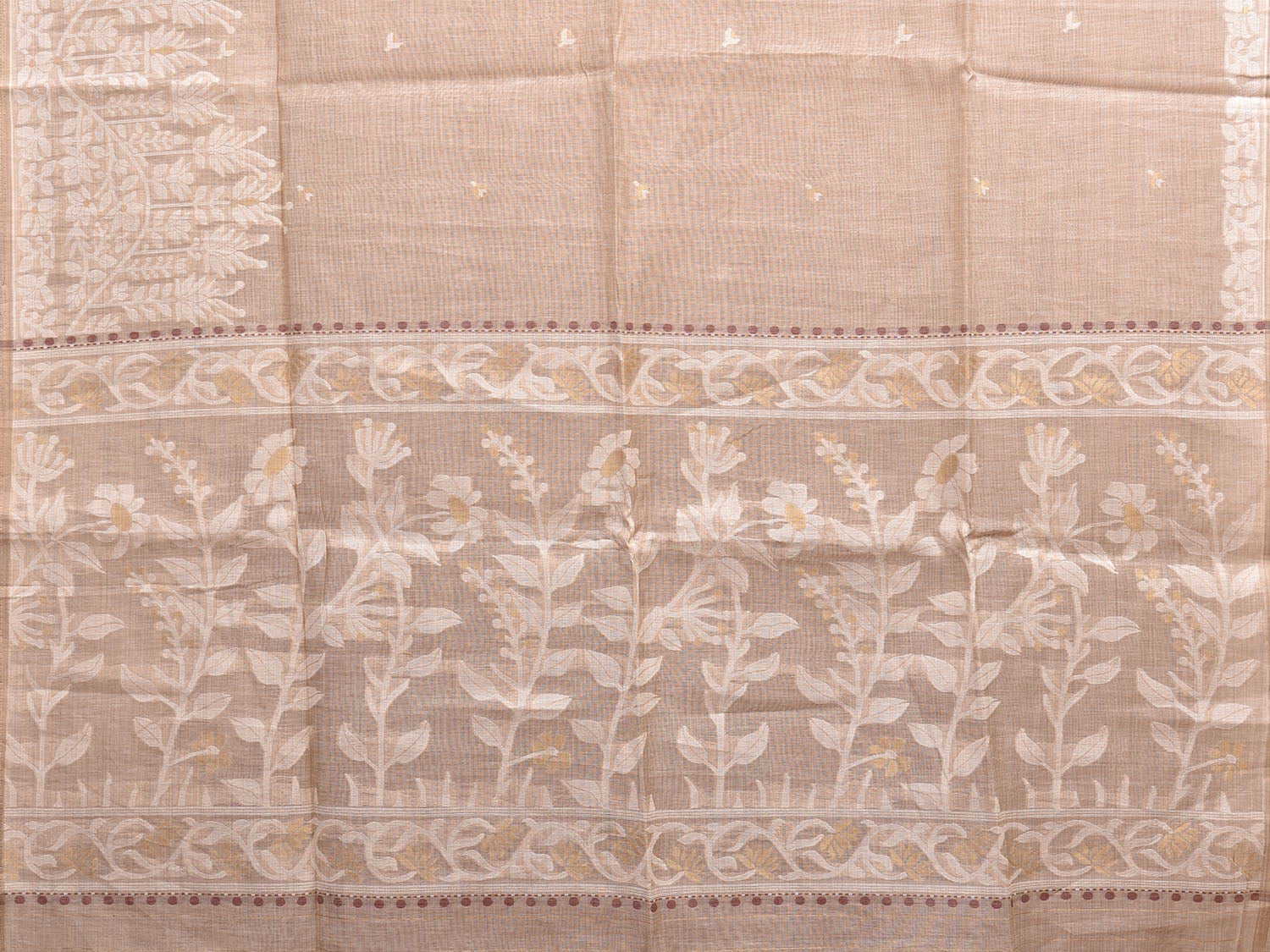 Cream Dhakai Jamdani Cotton Viscose Saree with Pallu and One Side Big Border Design dj0014