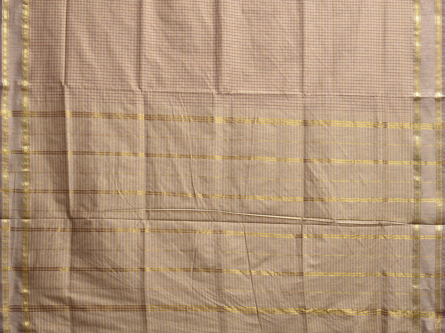 Cream Gadwal Cotton Viscose Saree with Checks and Strips Pallu Design g0531