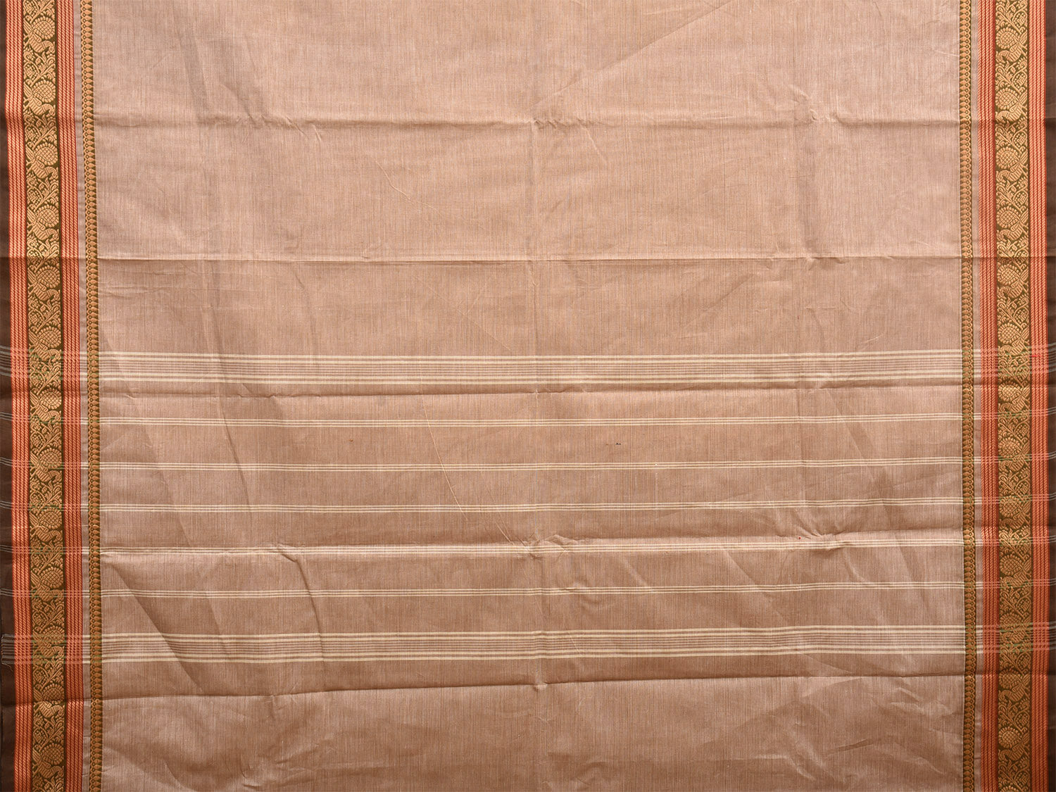 Cream Kanchipuram 80s Cotton Plain Saree with Peacock Border Design No Blouse k0644
