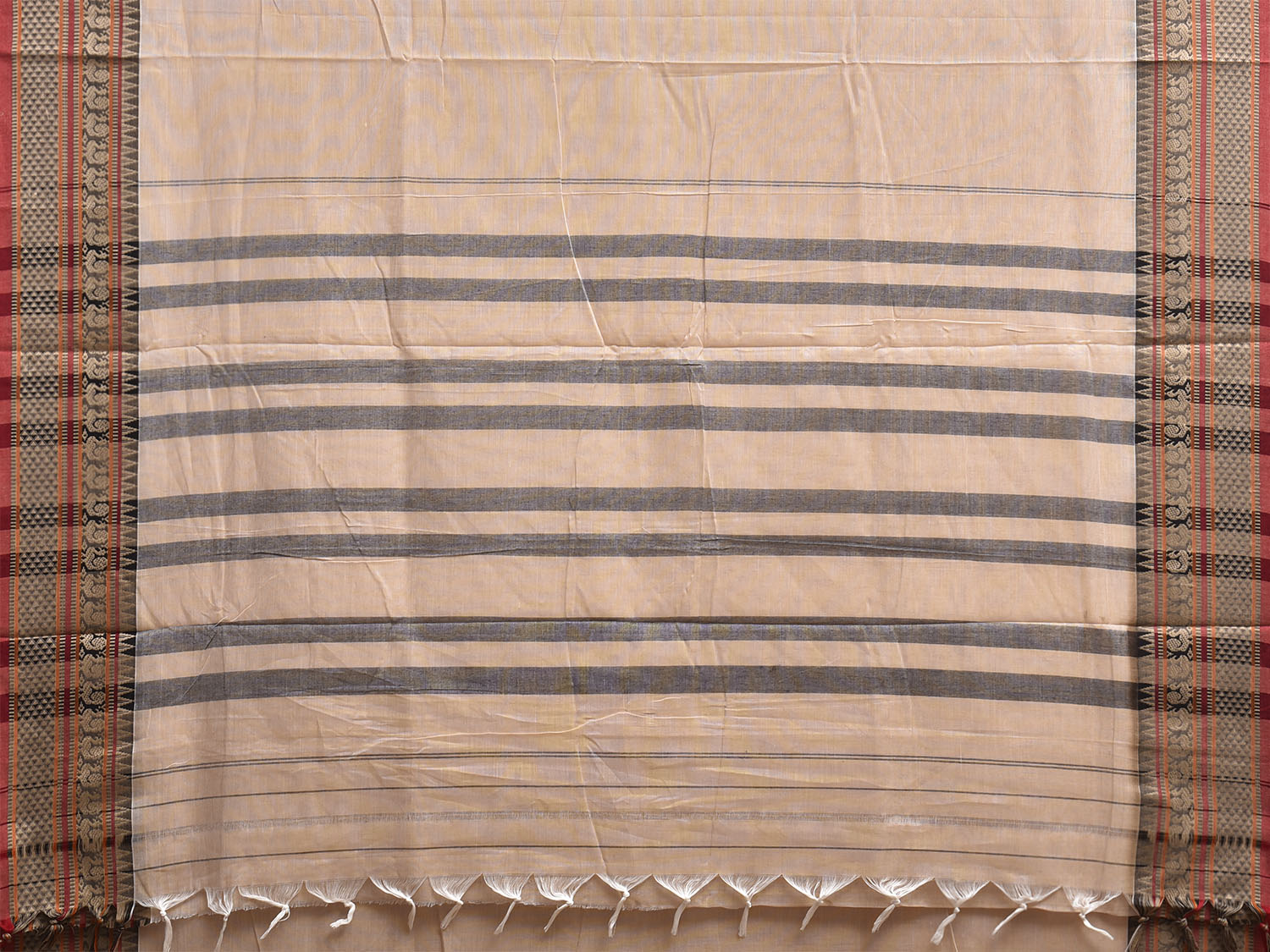 Cream Narayanpet Cotton Plain Saree with Kanchi Border and Strips Pallu Design No Blouse np1369