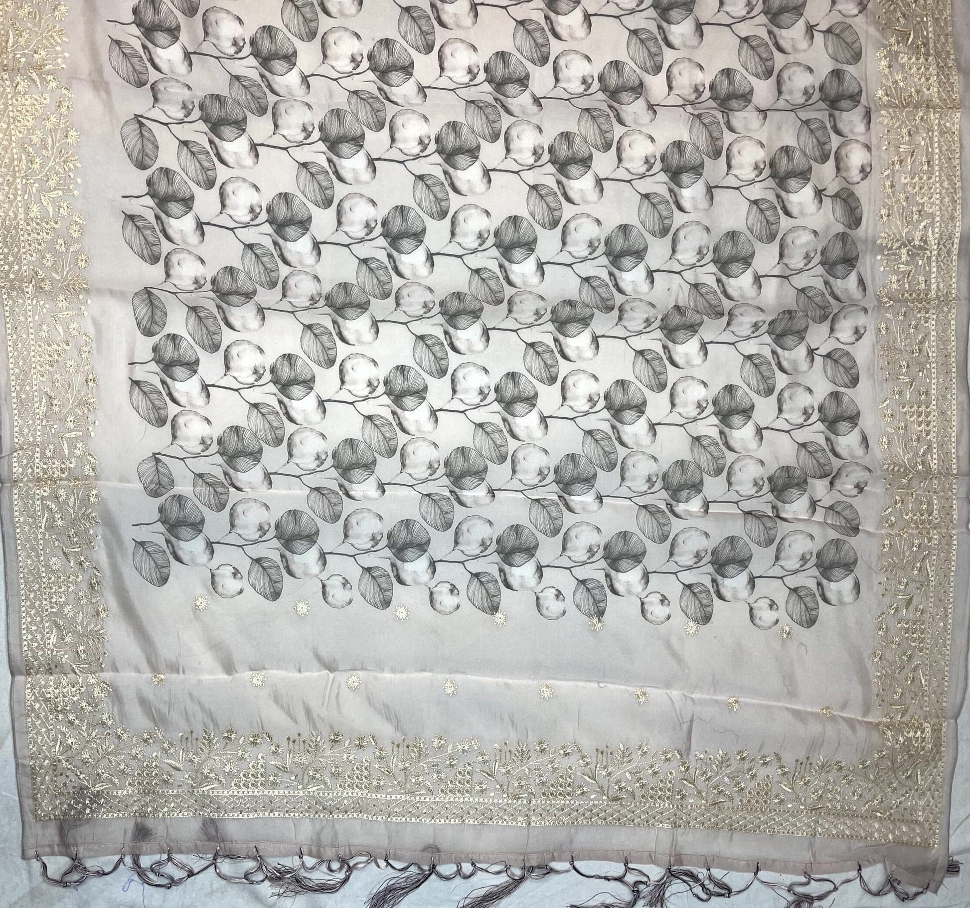Cream Organza Printed Saree with Floral and Embroidery Design pr0008ap