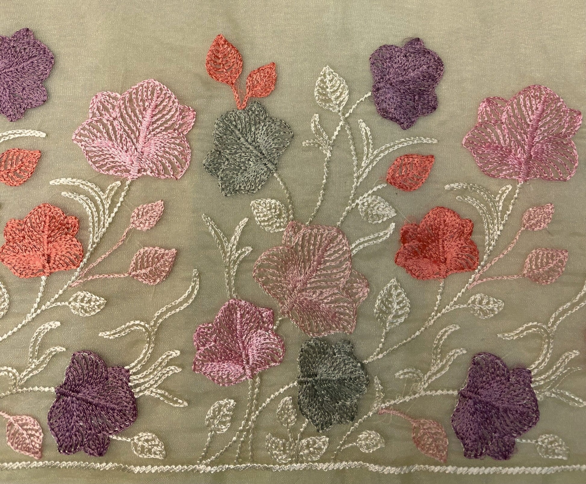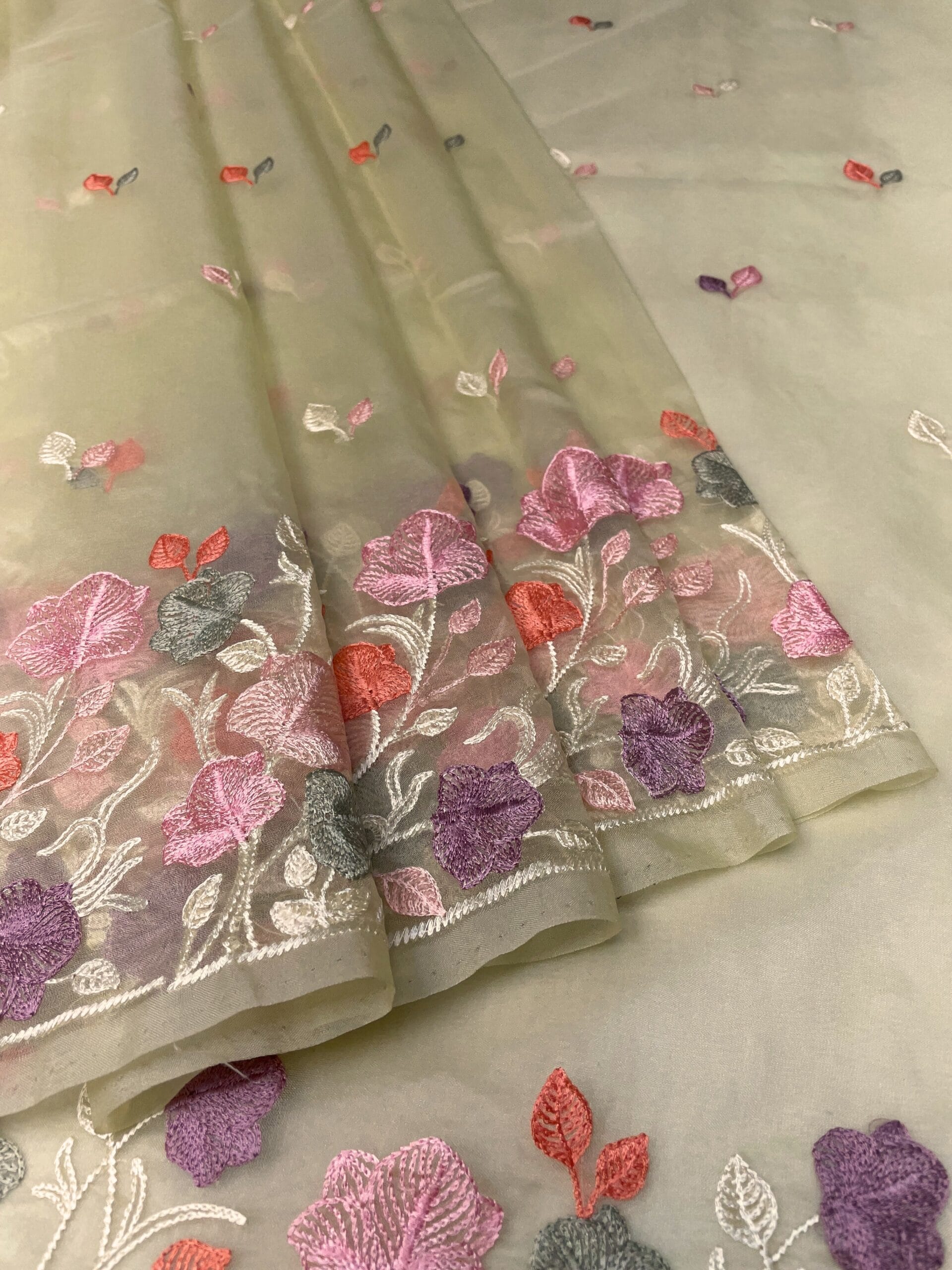 Cream Organza Saree Embroidery with Butta and Border Design b0334ds