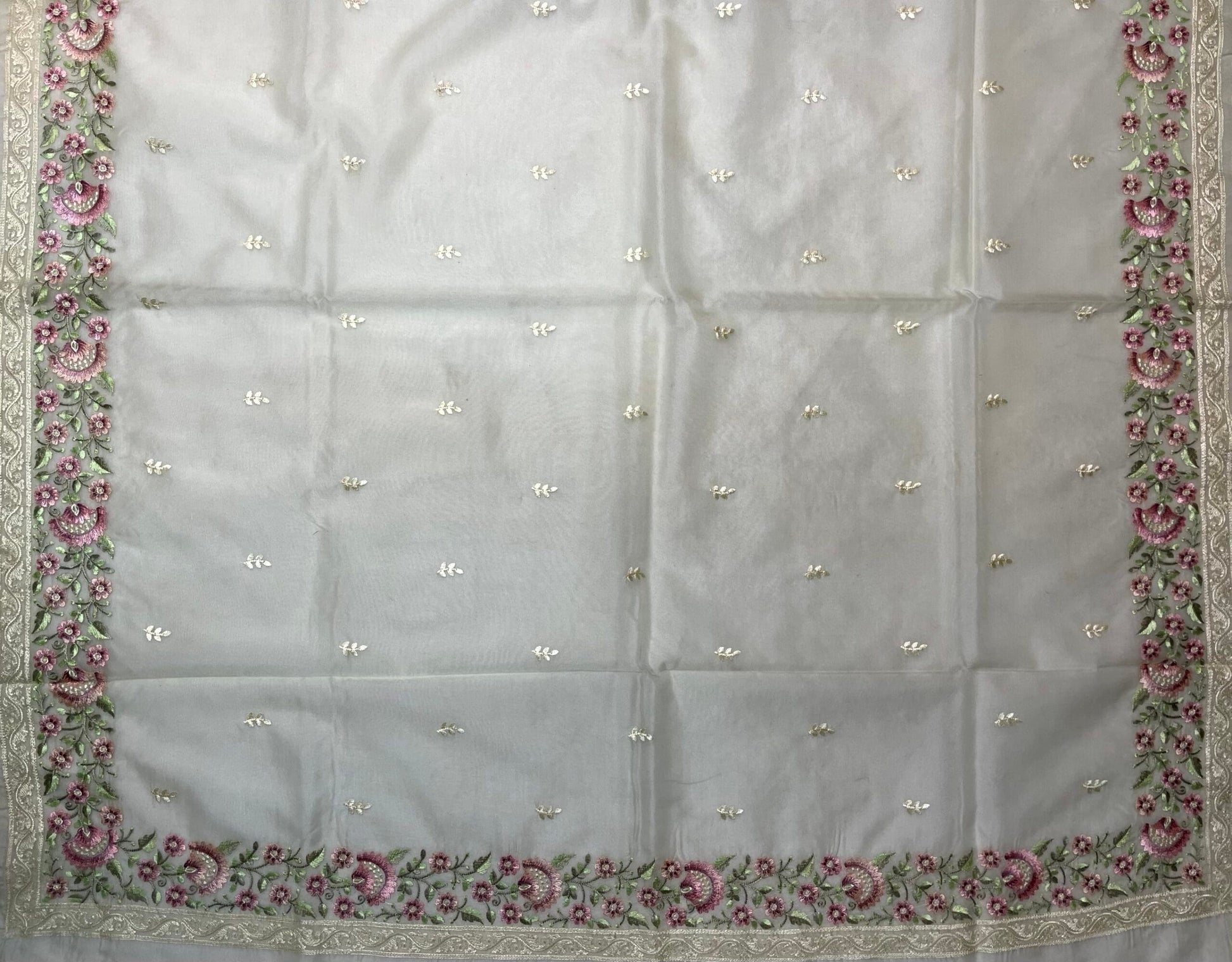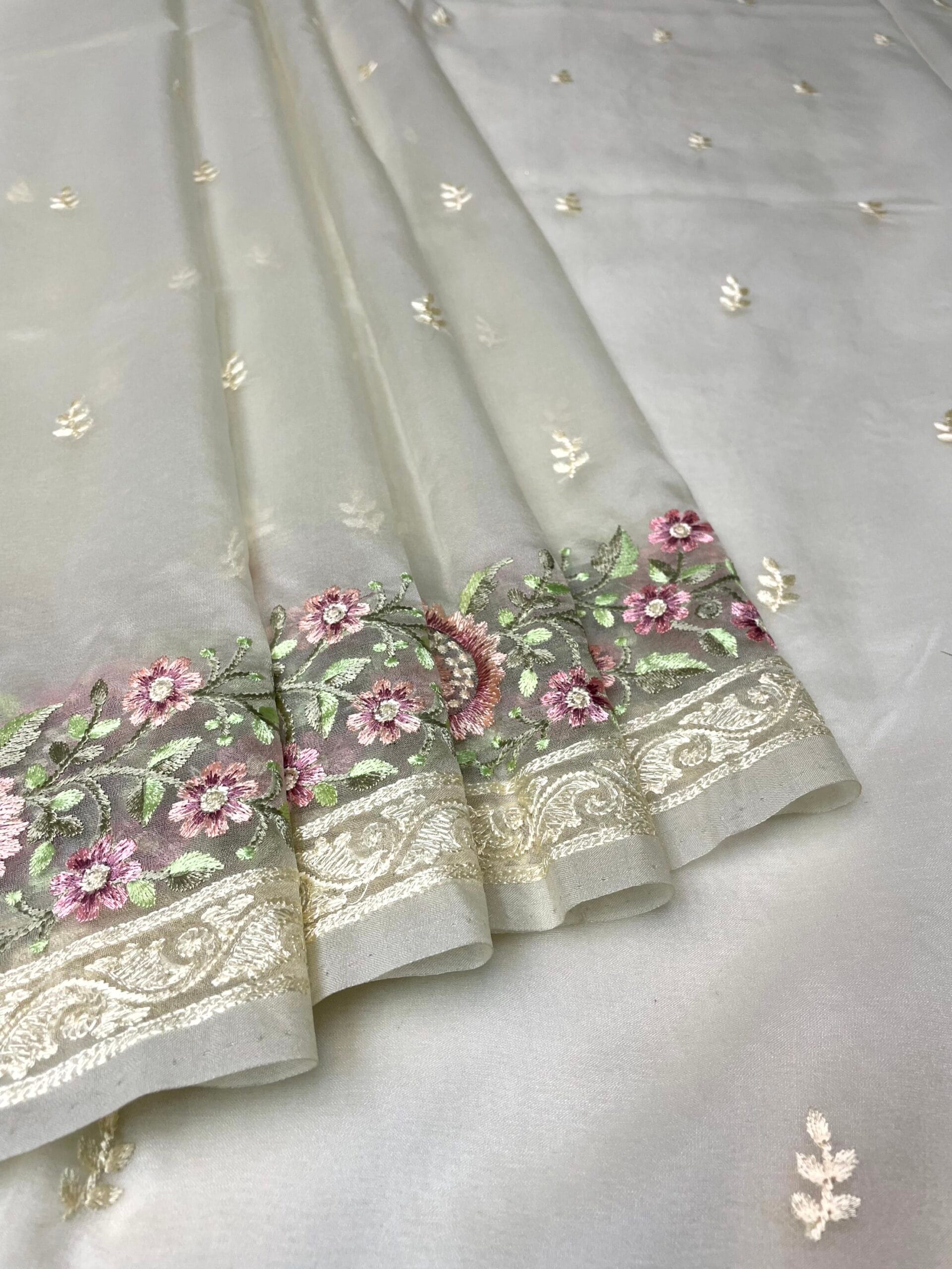 Cream Organza Saree Embroidery with Butta and Border Design b0342ds