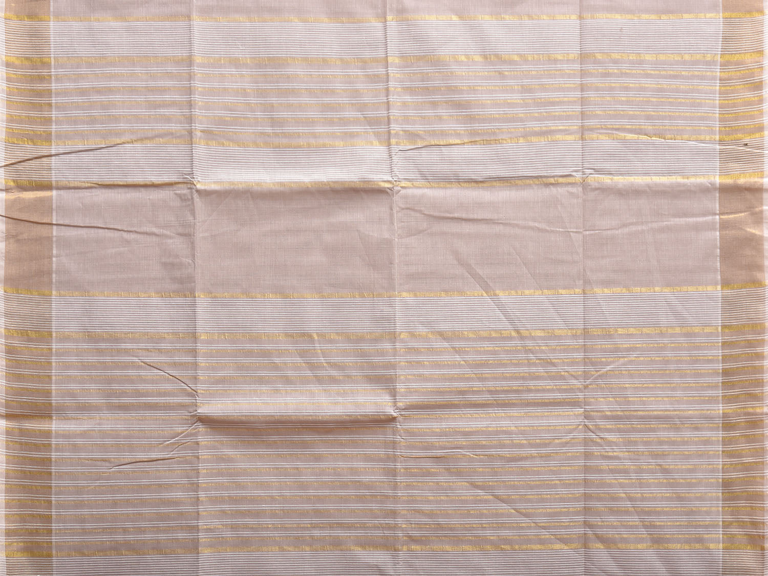 Cream Venkatagiri Cotton Saree with Strips Body and Pallu Design v0094