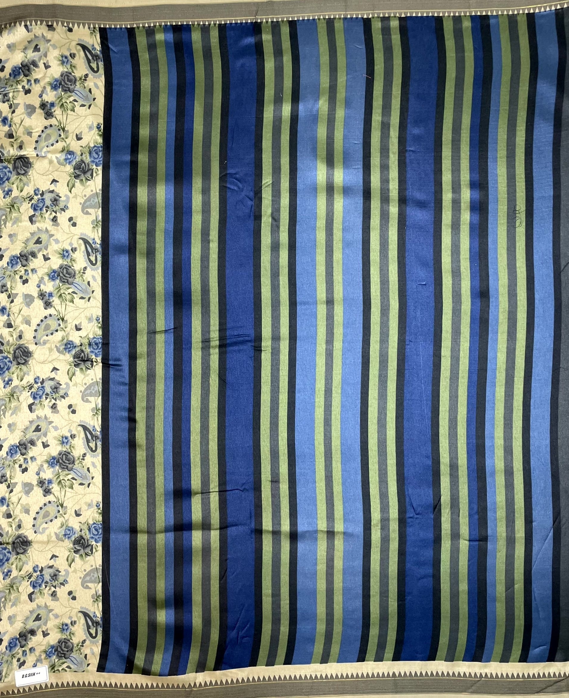 Cream Viscose Silk Saree with Temple Border and Floral Digital Print Design pr0004us