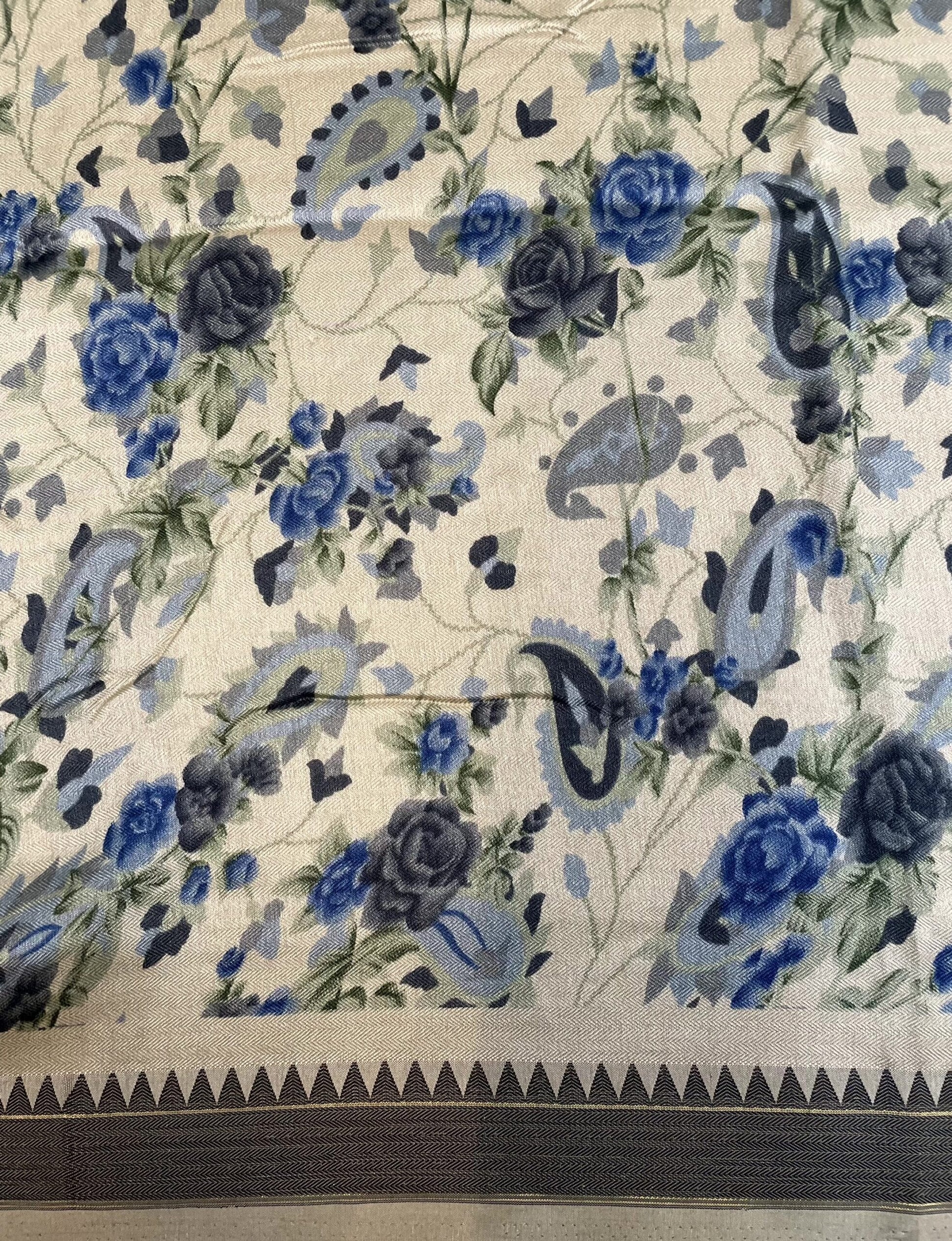 Cream Viscose Silk with Temple Border and Floral Digital Print