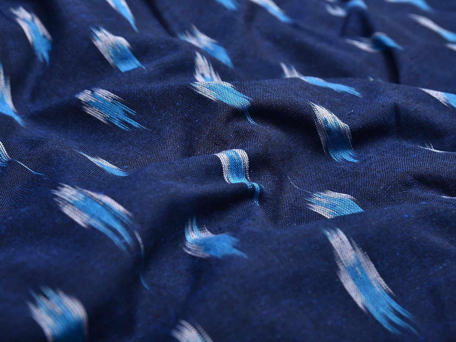 Dark Blue and Blue Pochampally Ikat Cotton Handloom 2.5mts Fabric with Body Buta Design. This Handloom Cotton Fabric from Andhra Pradesh has been woven using the resist-dyeing, which produces the unique patterns adorning the fabric. Fabric is 44 inches in width. The price mentioned is for Quantity 1 = 2.5 meters. Note: Don't wash with other cloths for few times in the beginning.
