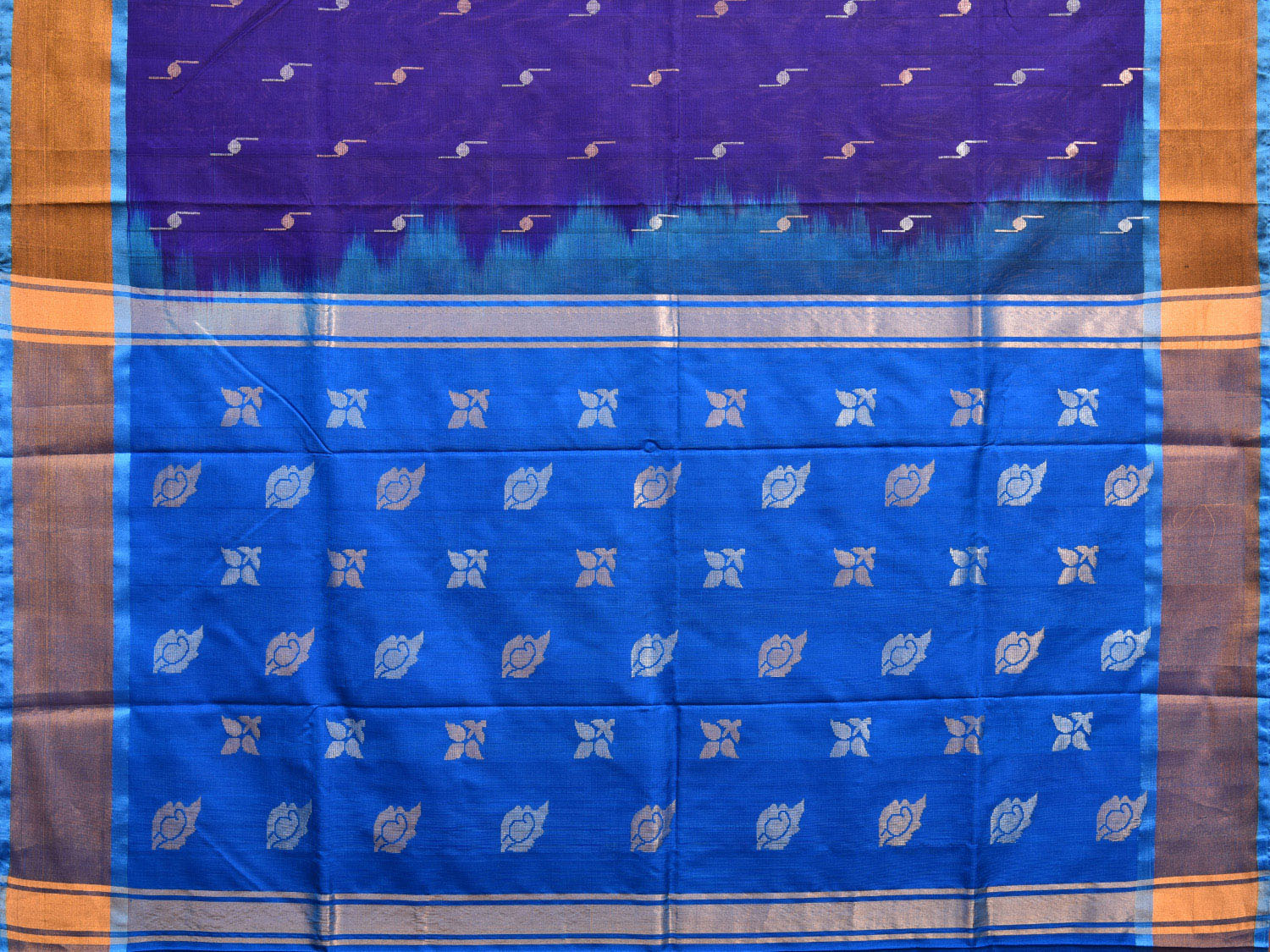 Dark Blue and Blue Uppada Silk Handloom Saree with Body Buta and Contrast Pallu Design u2267